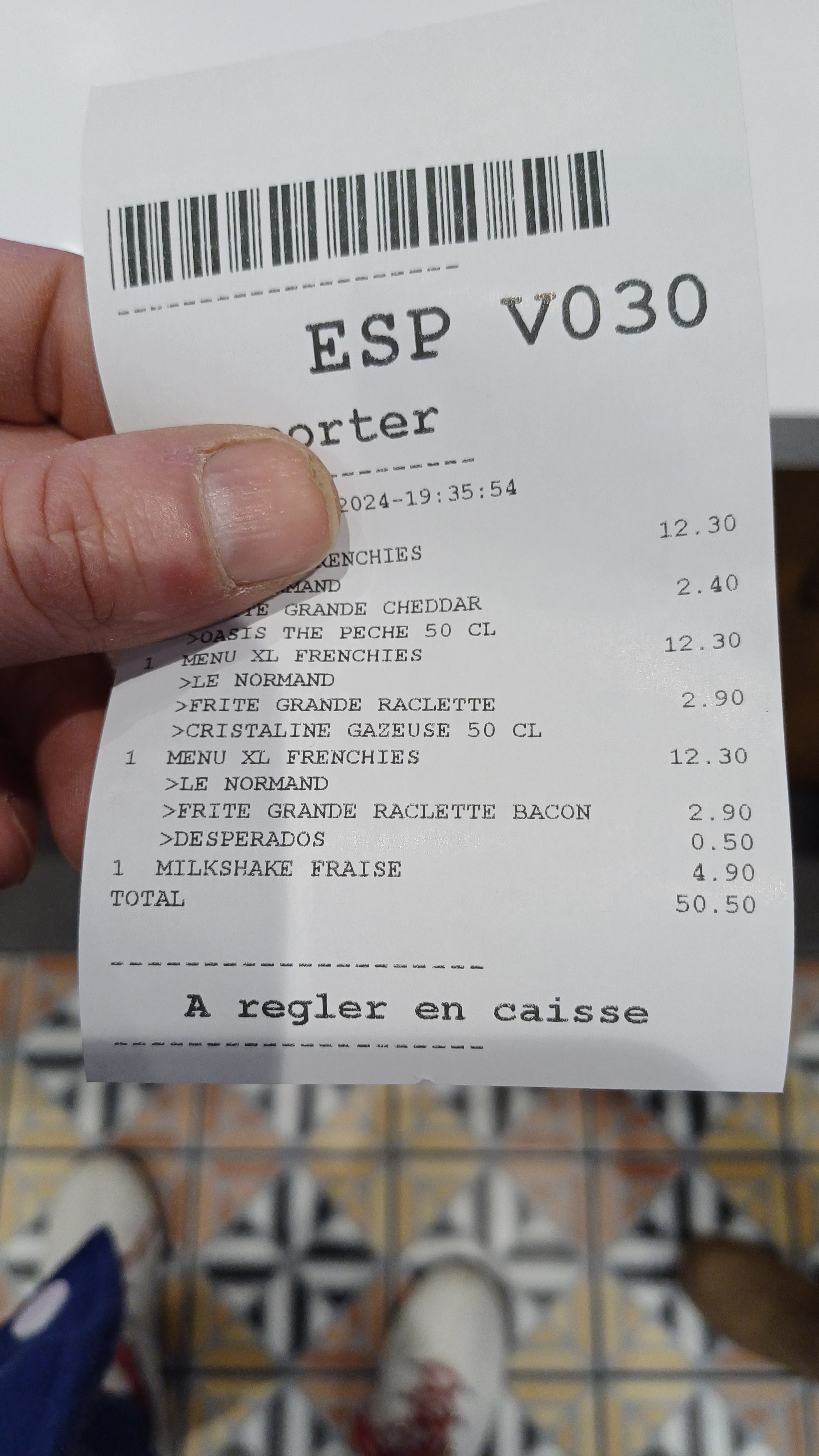 Franchement mon mari revient avec la moitié de la commande dessert en moins on commande des menu xl avec des frites cheddar a 12.90....et brioche perdu a 4.40.et sur plus chantilly...note total 45 .50......il rentre il manquer déjà les desserts et frite cheddar .....il repart avec les sacs pour prouver la bonne cause mais je lui ai dis ça va être froid en revenant vu étant de Toutainville ..dis leur qu il refasse la commande entière ...moi étant handicapés je peux pas y aller...on a même pas un numéro pour les joindre .....et je lui dit tu aurais du vérifier mais bon en plus faut commander sur le tableau donc il a demander de l' aide à un jeune homme de la bas .....il lui dise on vous donne à la prochaine commande.... franchement décevant