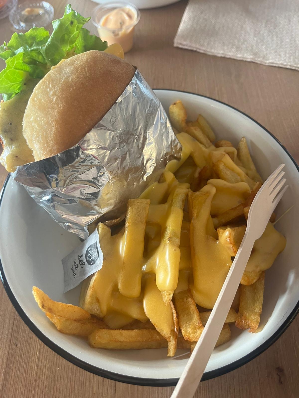 Burger assez bon avec des frites aux fromages pas mal, le temps d’attente est assez rapide. Je recommande.