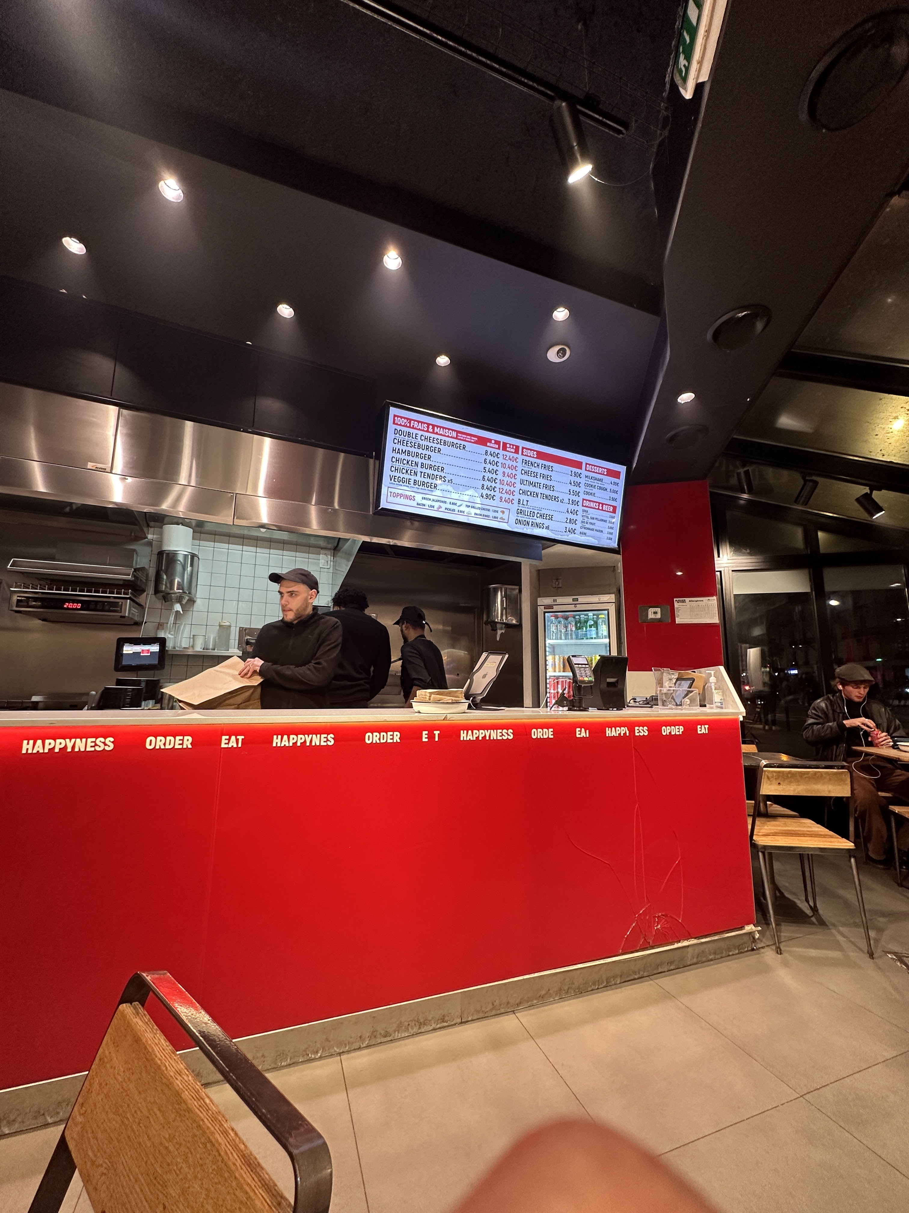 Bon acceuil, service très rapide et il y a un étage pour manger sur place. Le prix est légèrement élevé mais la qualité est au rendez-vous que ce soit les frites ou le burger.
