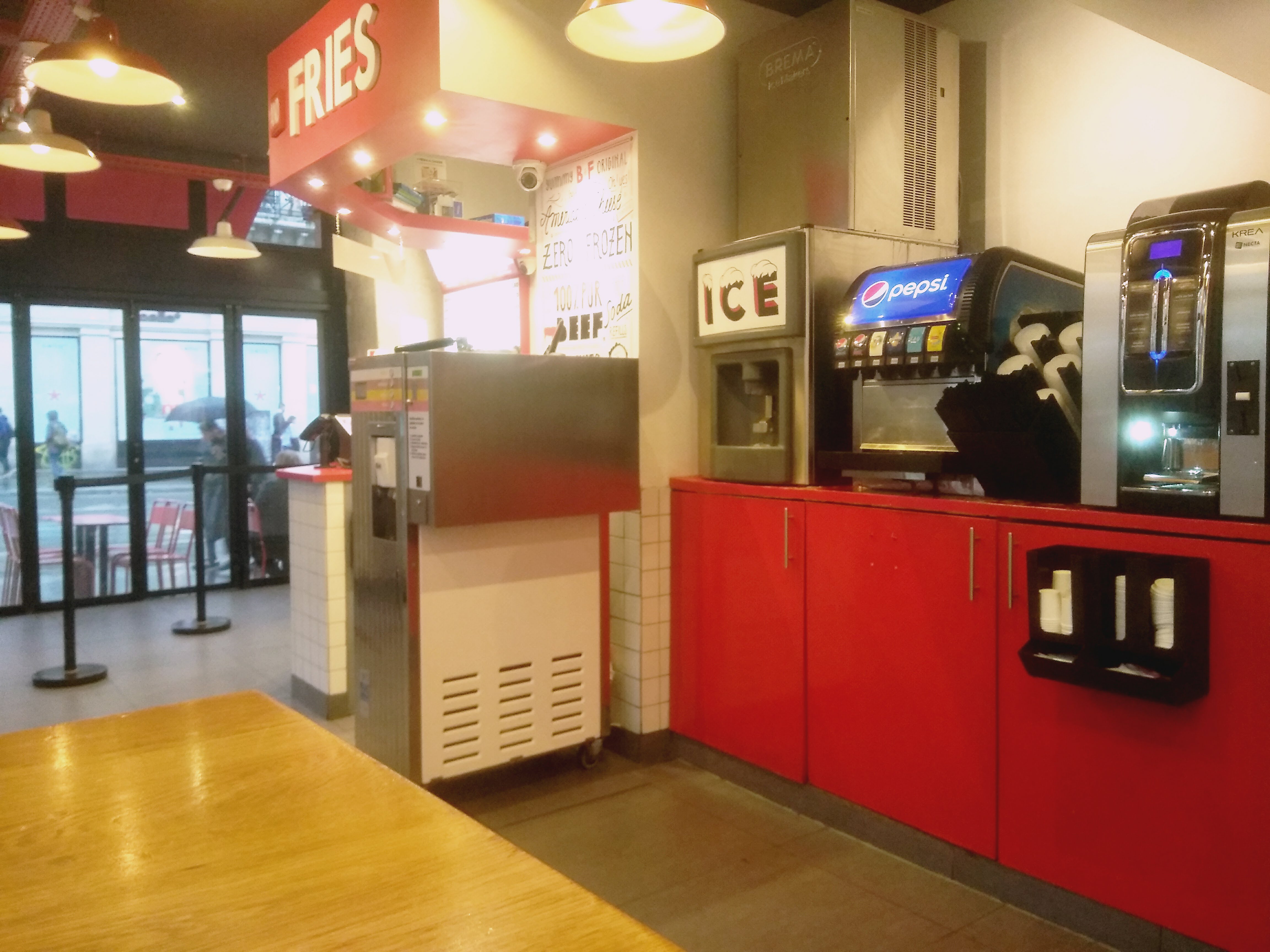 L'endroit semble propre (bien que la borne boisson/sauce doit être nettoyée plus souvent), le service client est correct, la nourritre bonne même si le prix est un peu cher par rapport à la quantité. Le refill de boisson est un gros +, mais vu la taille du hamburger, mettre un petit supplément de frite ne fait pas de mal.
