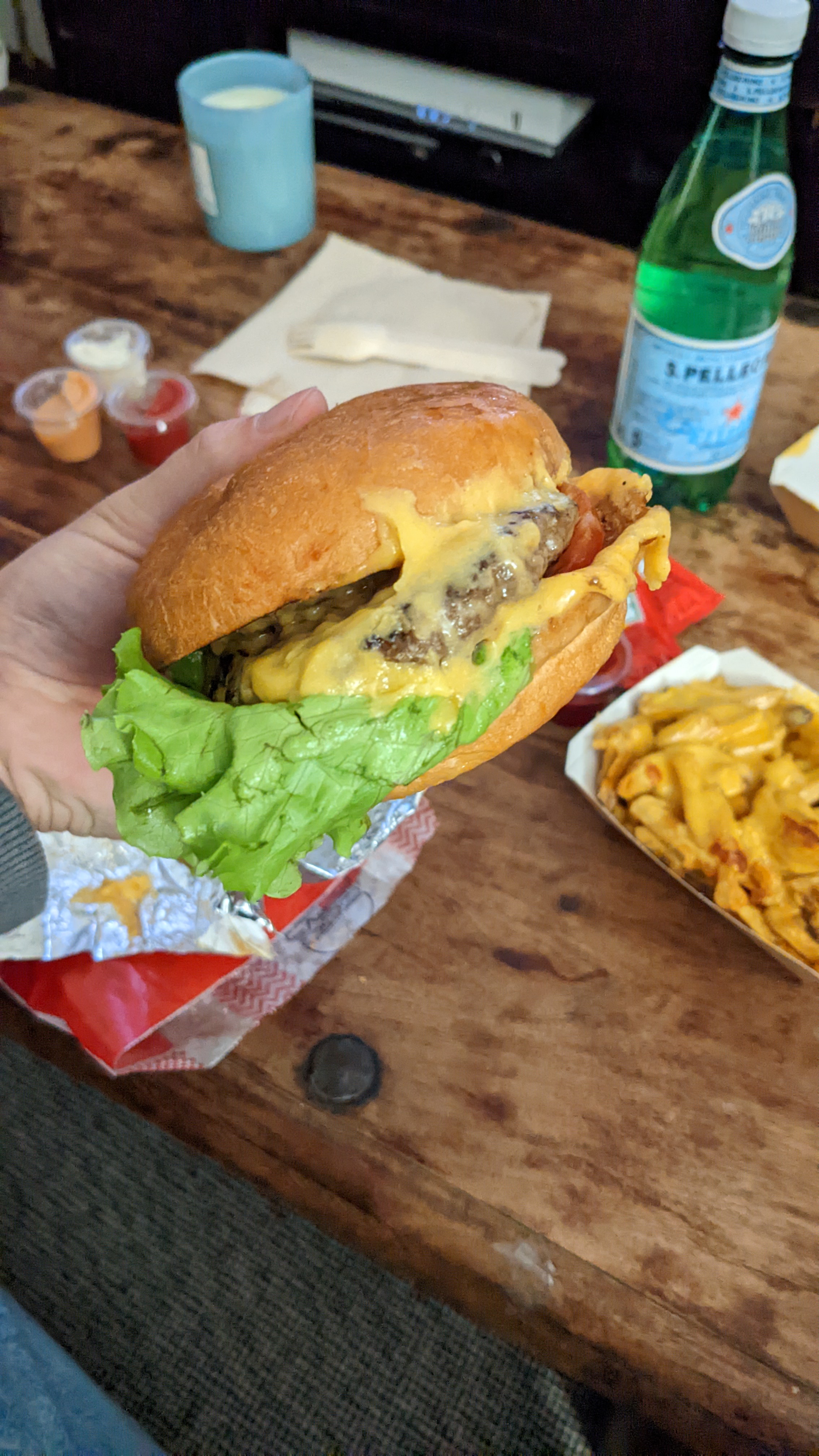 Burgers délicieux ! Frites croustillantes, avec une vrai tranche de cheddar fondu au grill pour les Cheese Fries. Service rapide avec système de Beeper pour savoir quand la commande est prête. Parfait pour un repas sur le pouce.