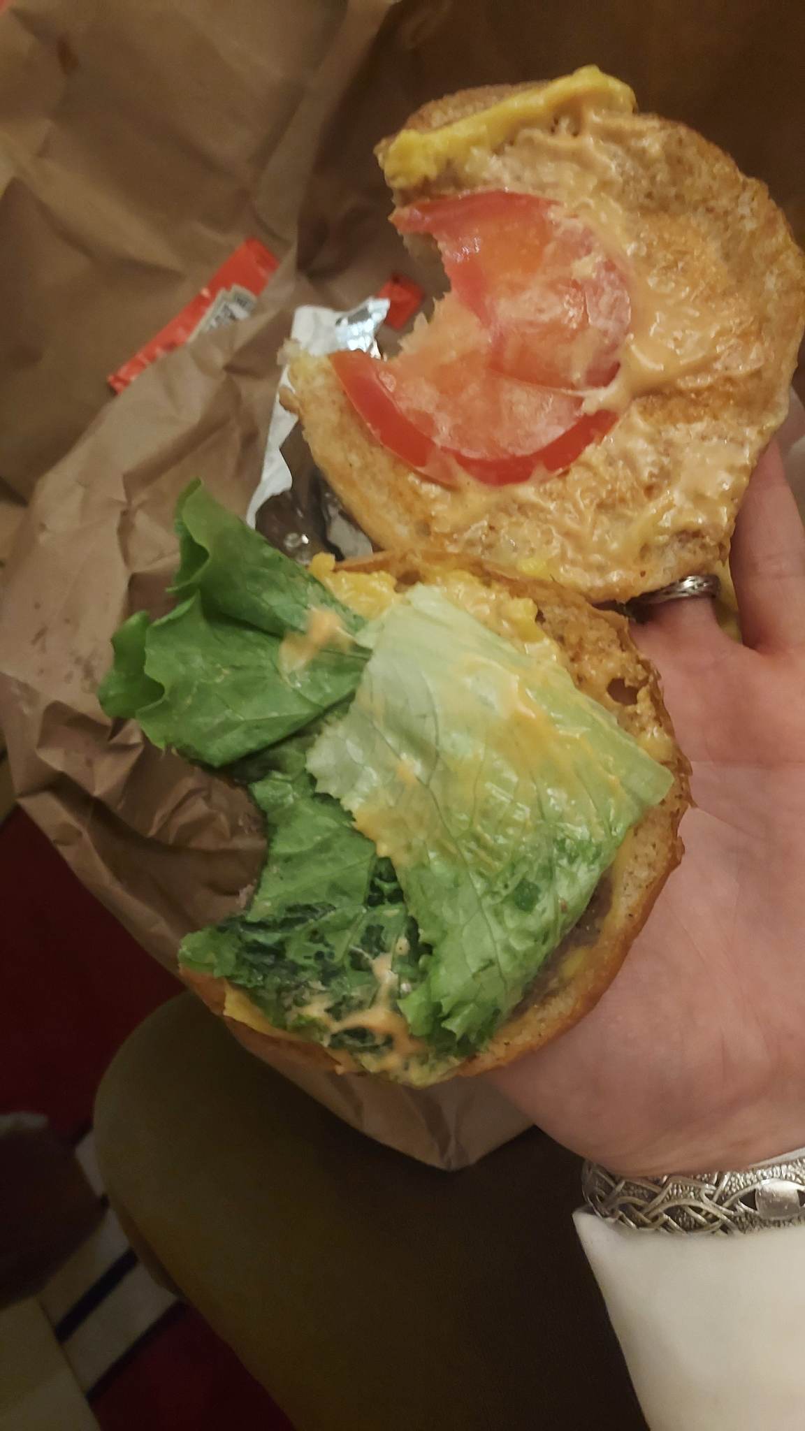 Ce fut un gaspillage d’argent décevant. Le hamburger et les frites étaient froids, une triste tranche de tomate (photo) et la laitue semblait venir de divorcer. La viande était croustillante (pas dans le bon sens), les photos étaient si belles, que s'est-il passé ? Qui vous a blessé les gars ?