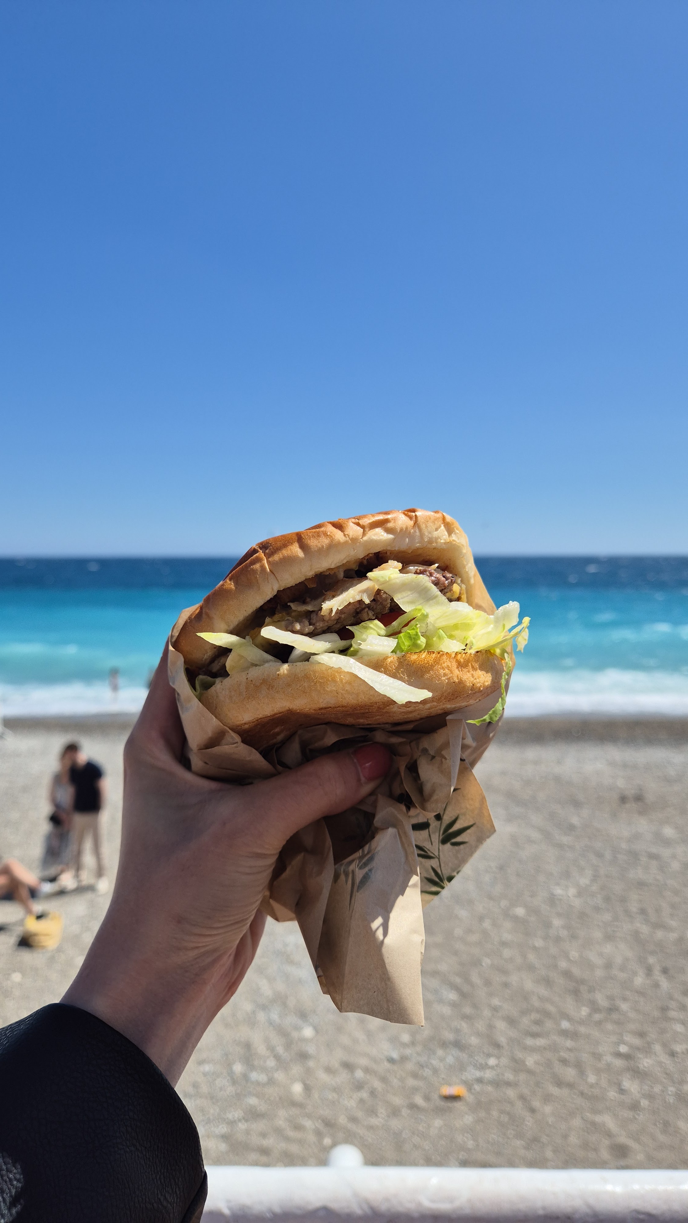 Délicieux hamburger. Super endroit pour en acheter un et le manger au bord de la plage ⛱️🏖️