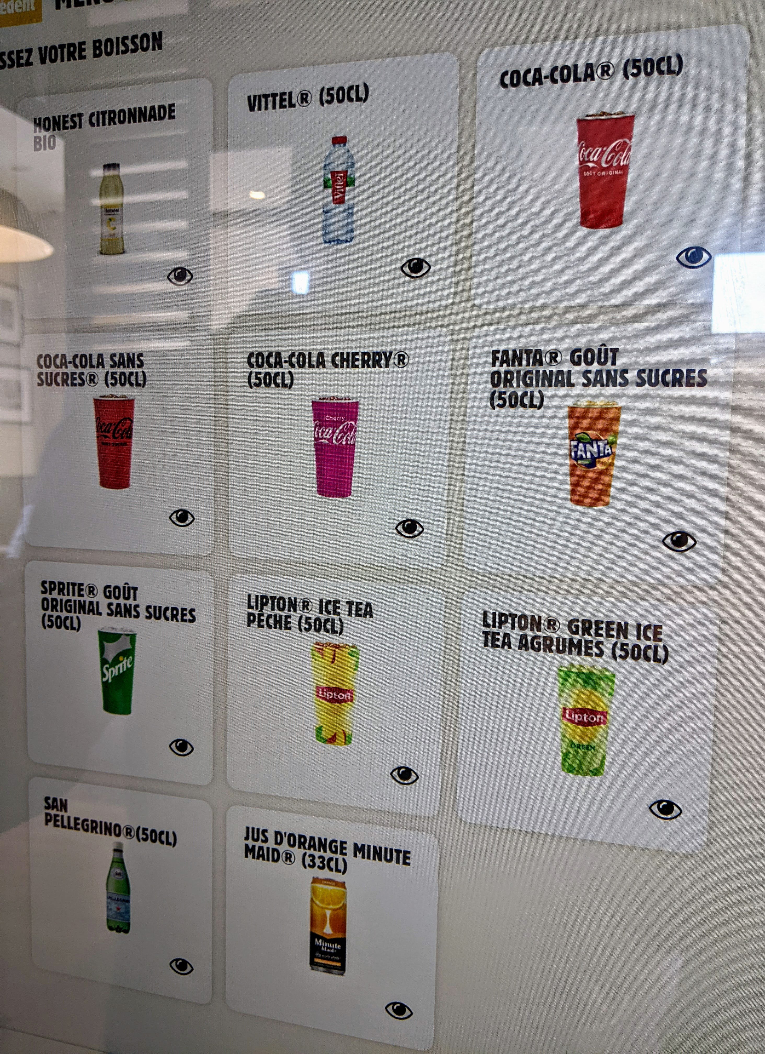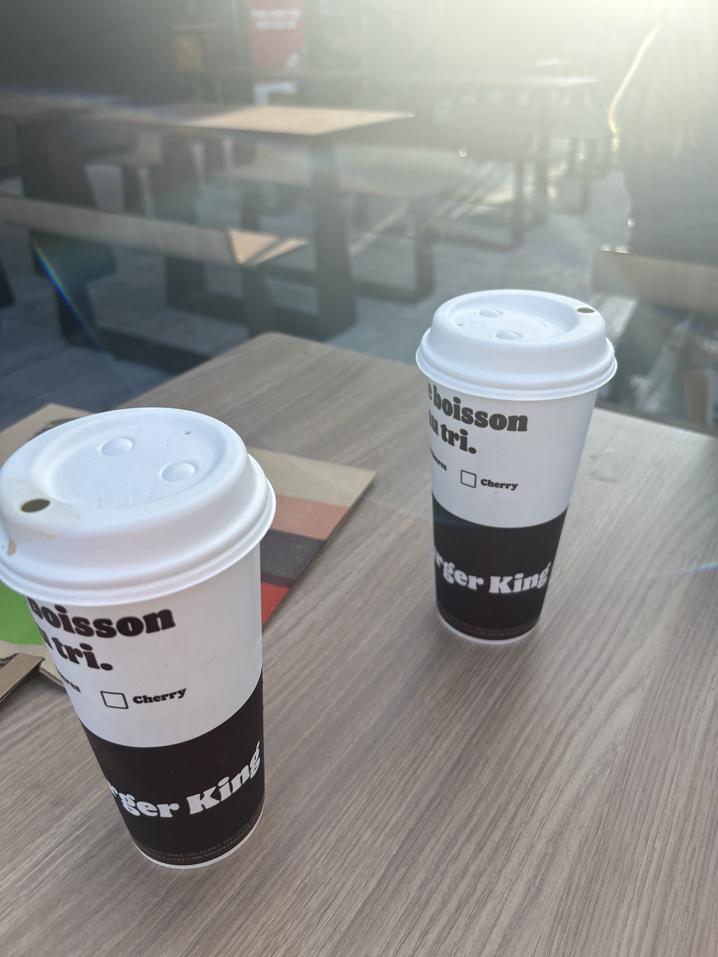 Nous sortons à l instant avec une collègue. Nous avons pris à emporter. Service rapide mais boisson qui n était pas gazeuse du tout.. ( coca et coca cherry). Changer votre boisson ou bien ne les coupez plus avec de l eau..
