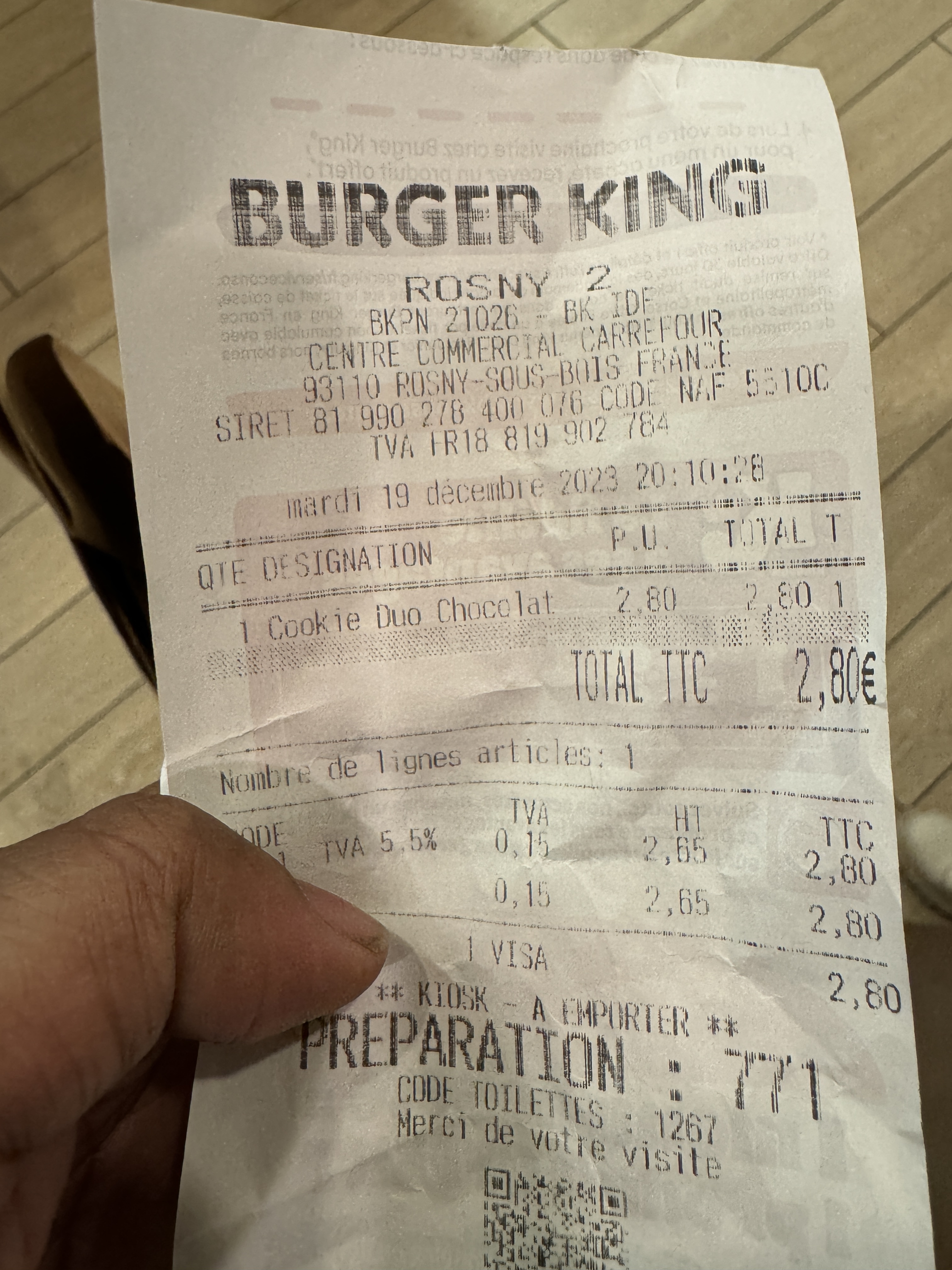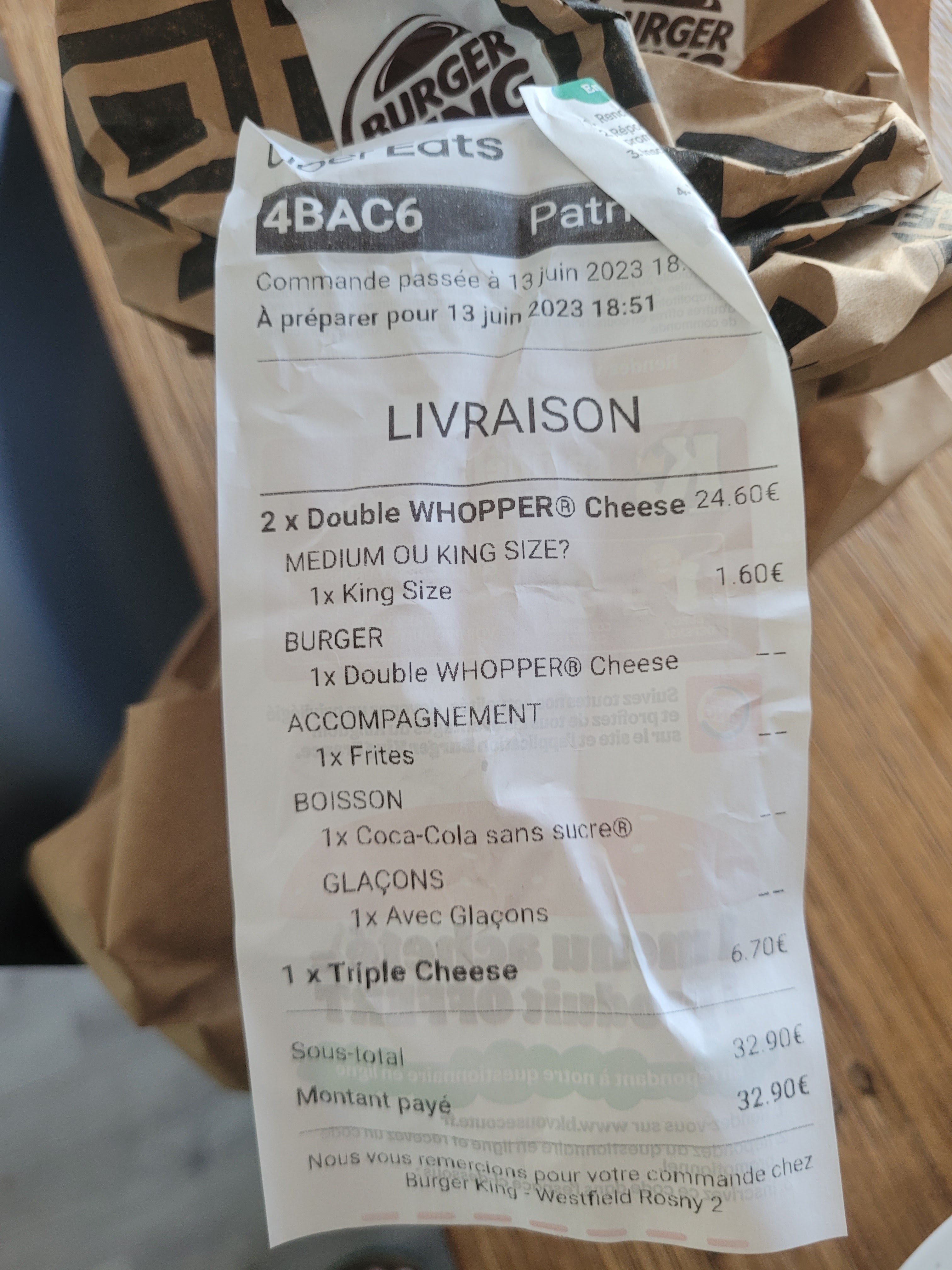 Super service, rapide et fiable, manque rien dans la commande, serviable adorable, meilleur BK de la région parisienne ❤️