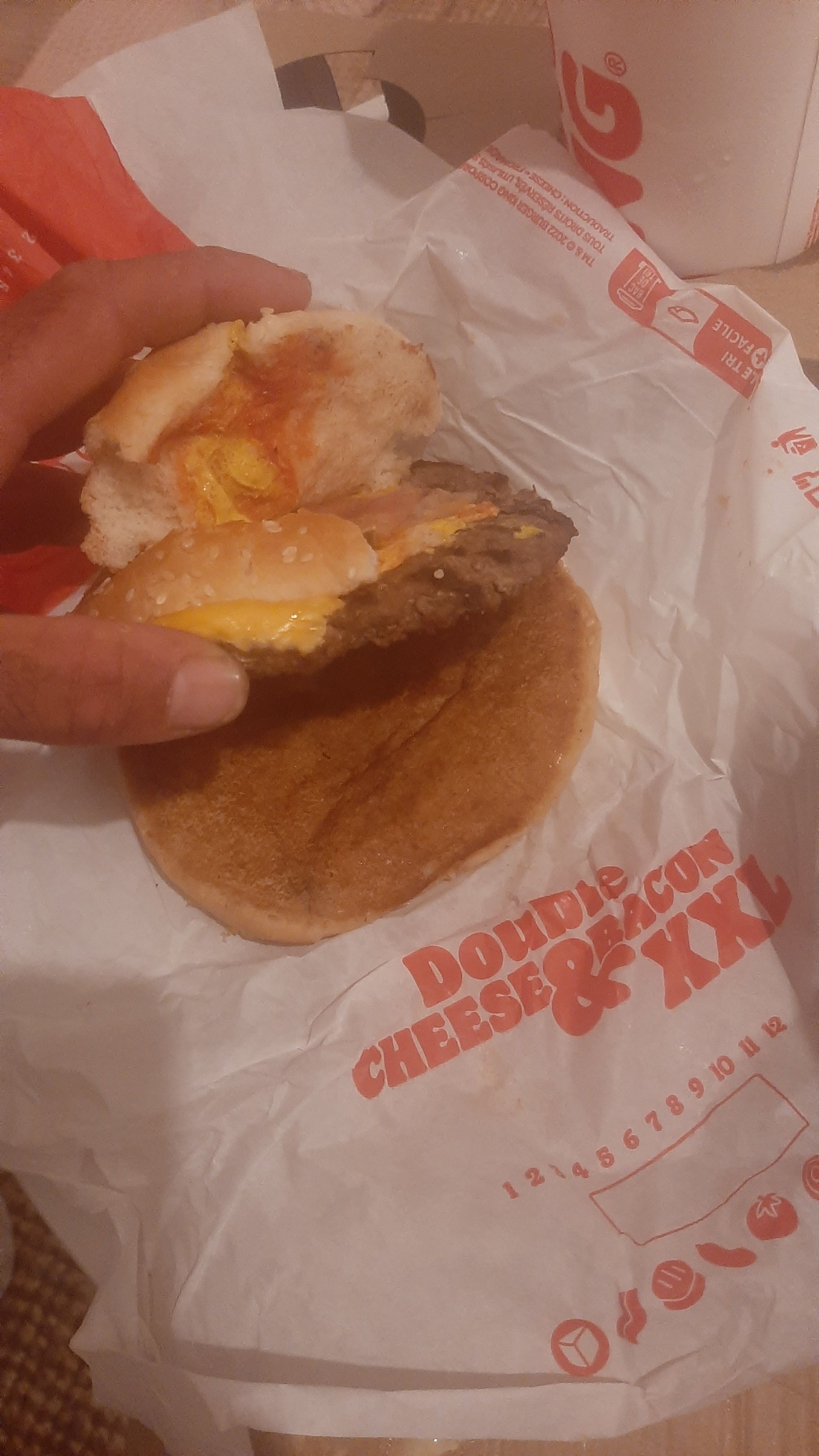Repas attendus avec impatience a la maison puisque c'était a emporter. A l'ouverture de mes frites, très déçu que diriez vous a ma place?? Oui j'ai des frites, mais le bacon est vraiment inexistant....J'aurais aimé envoyer cela en privé car cela peut être une erreur mais pas eu le choix .. en attente de votre reponse