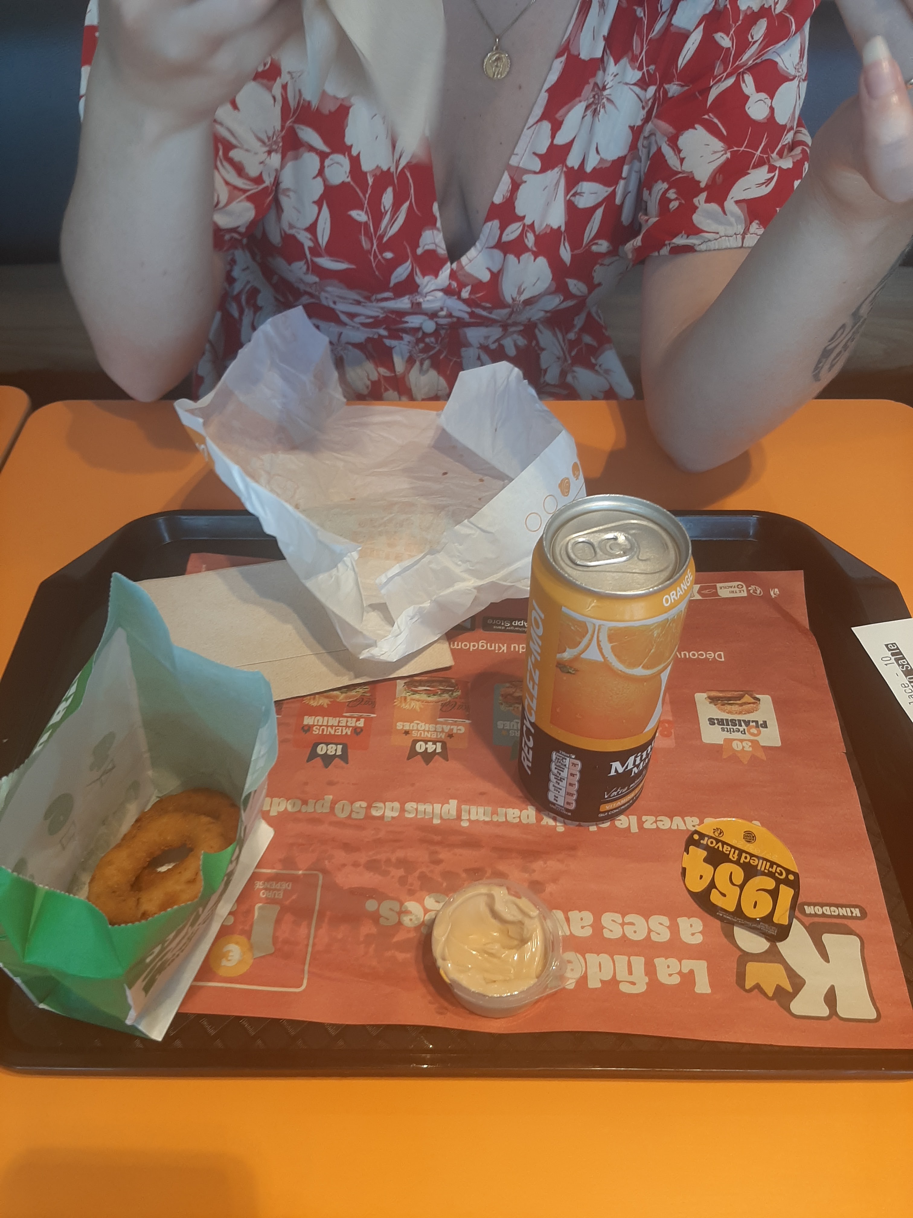 A peine arriver j’ai tout de suite été très bien accueilli, le restaurant sentait bon et tout était propre, j’ai commander un menu King et je l’ai reçu très rapidement bien servie et chaud j’ai pu rigoler avec benjamin.m et romain qui se sont montrer très agréables et droit. Une de mes meilleurs expériences dans un restaurant Burger King, je recommande !