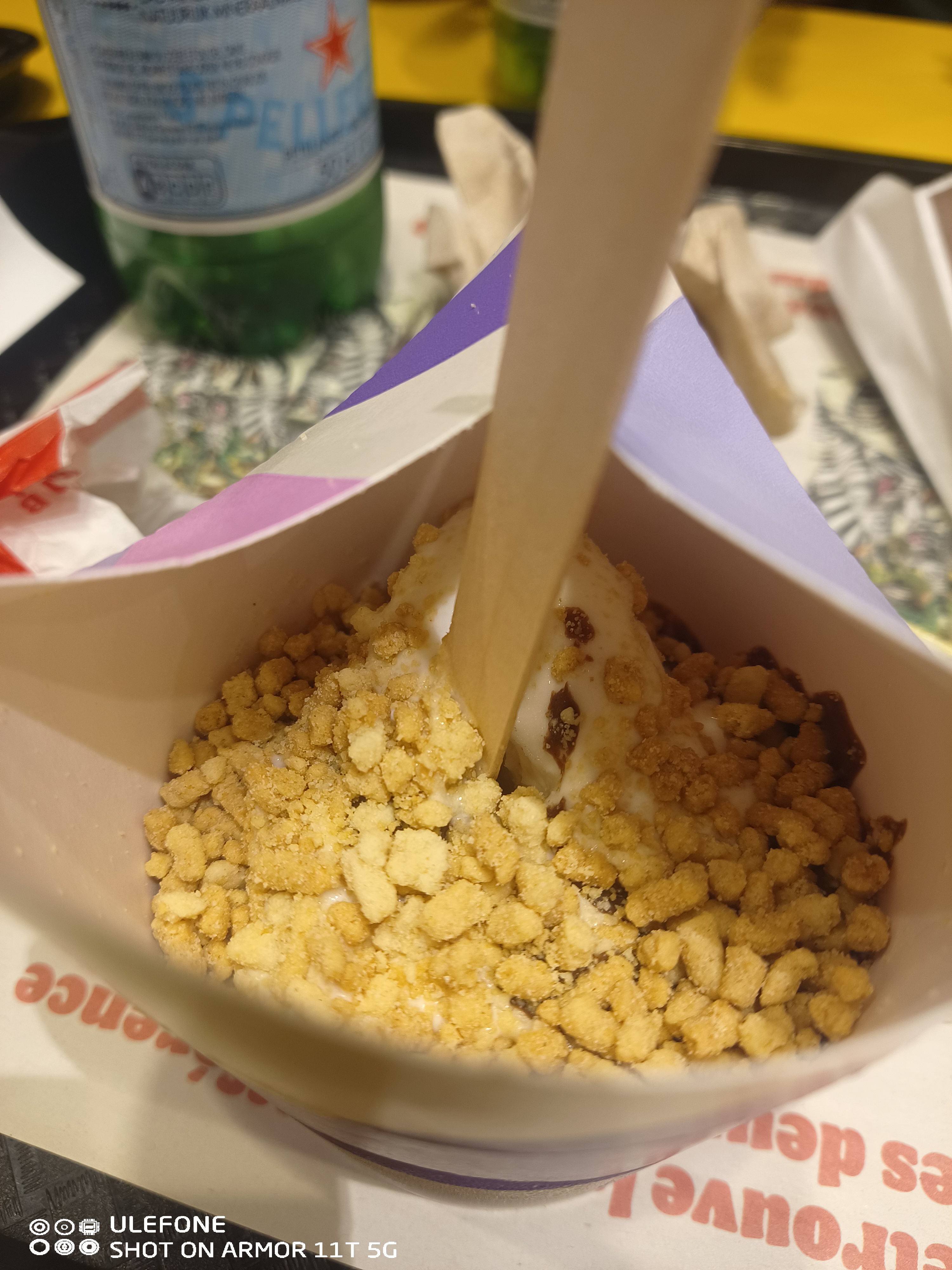 Hyper déçu Boisson sans glaçon (machine en panne), pas de bulle dans le coca ni le fanta, menu 9 nuggets...seulement 7 dans le paquet, nous allons au comptoir, ils nous redonnent un paquet avec ...7 nuggets au lieu de 9.... Glaces sans topping....bref...
