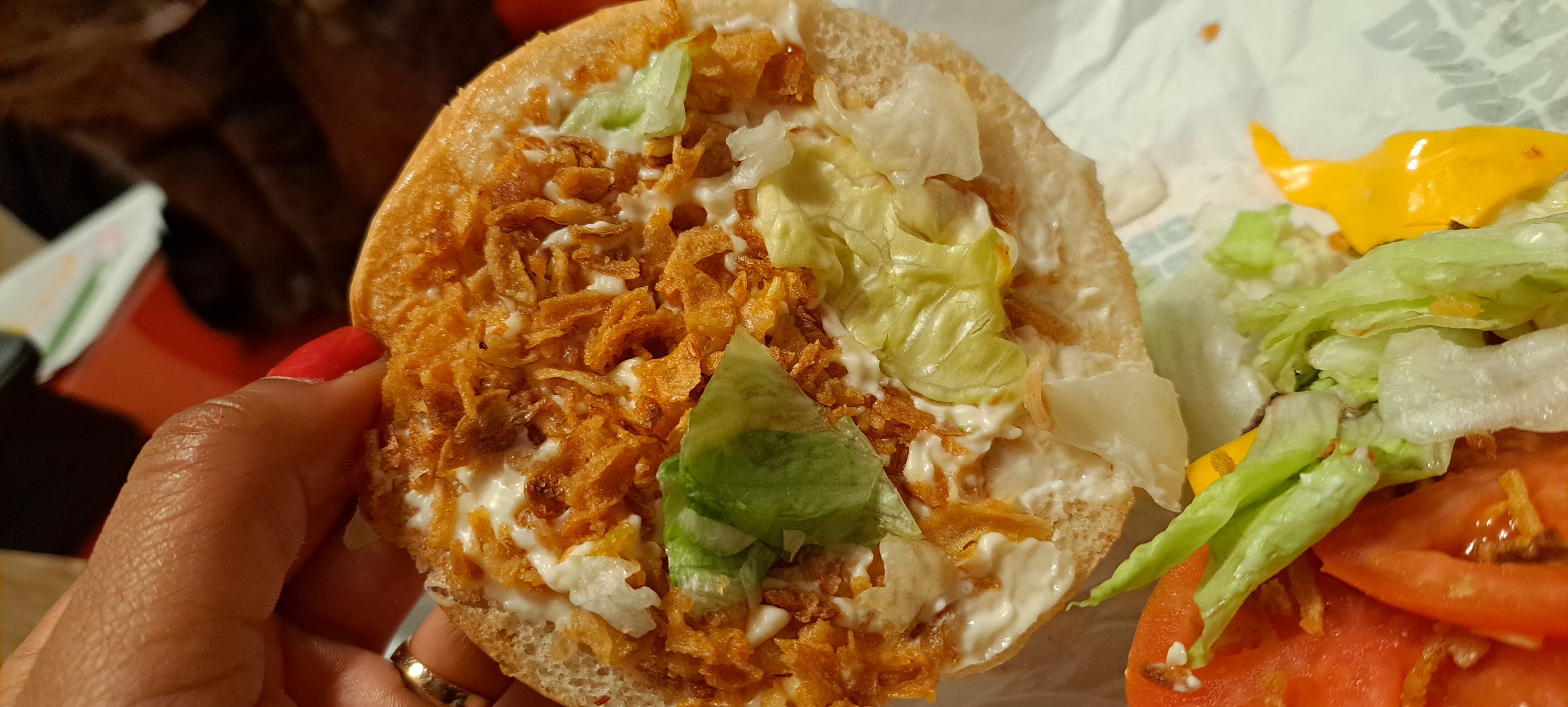 Je commande un big king je fini avec un sandwich inconnu au bataillon, à la place des frites, les chili cheese et mon coca biensur rempli à moitié, brf c’était degueu allez chez Mcdo