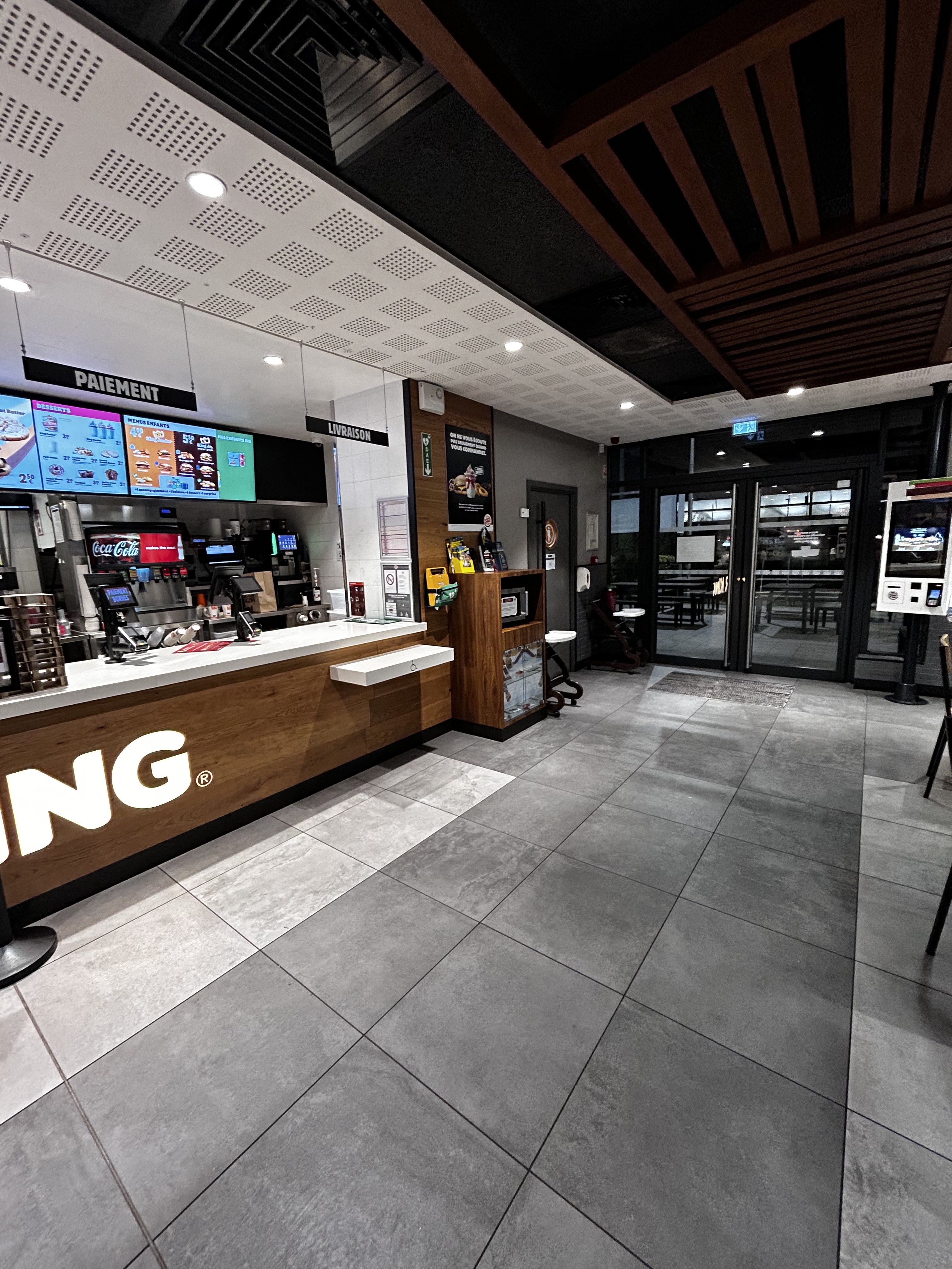 Enseigne connue et reconnue. On aime ou on n'aime pas. On y recherche pas un service à table et la borne de commandes ne facilite pas les échanges mais on le sait . Tous les BK sont sur le même modèle.