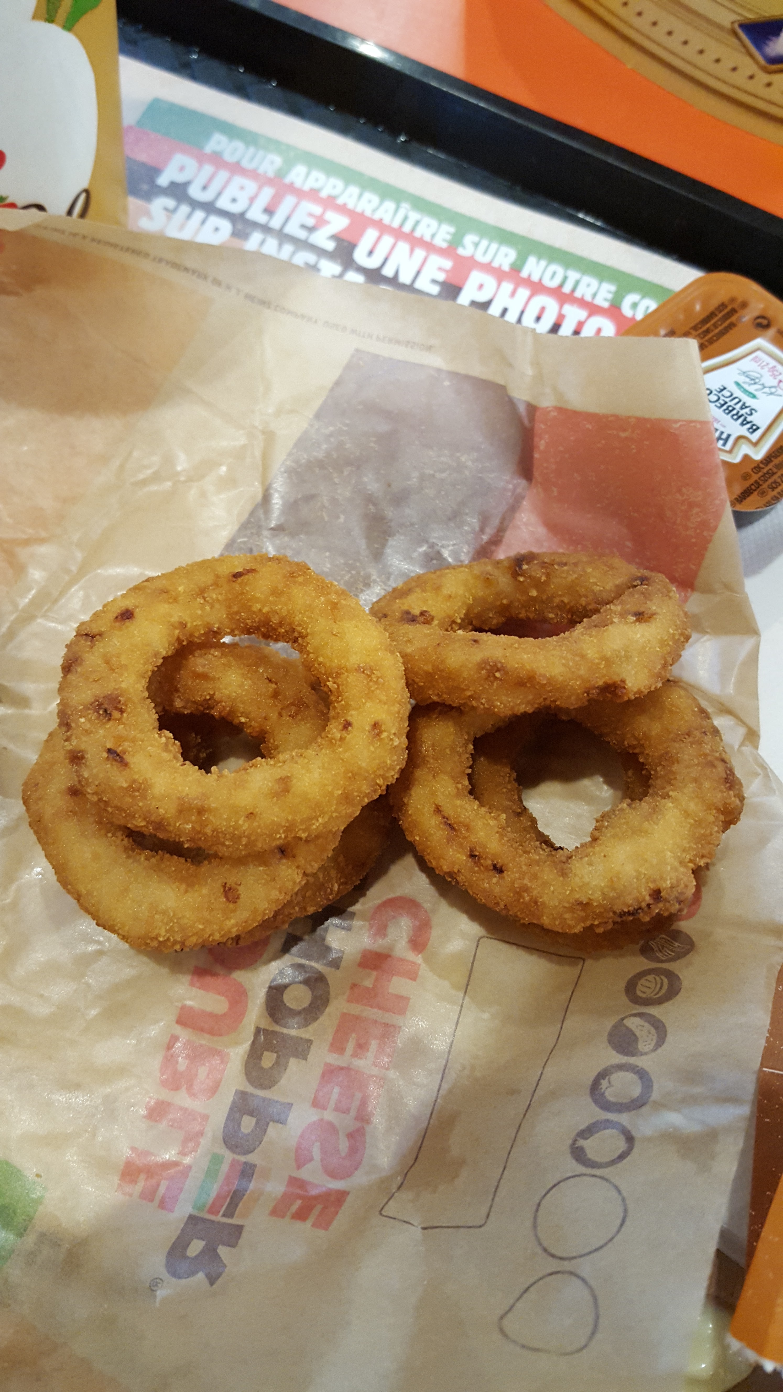 On y est bien accueilli, plusieurs bornes disponibles ce qui est vraiment pratique, la salle et la terrasse sont assez grandes on peut y aller en groupes sans problèmes selon les horaires.Les oignons rings et les frites sont excellentes quand elle sont préparé à la commande 👌🏿😉. Le burger est bon pour ma part je personnalise toujours mon burger , on peut le faire pourquoi ne pas en profiter 😁😁 de bon petits moments agréables en perpectives je recommande ce Burger King ( évite les horaires de rush pour être tranquille 😁)