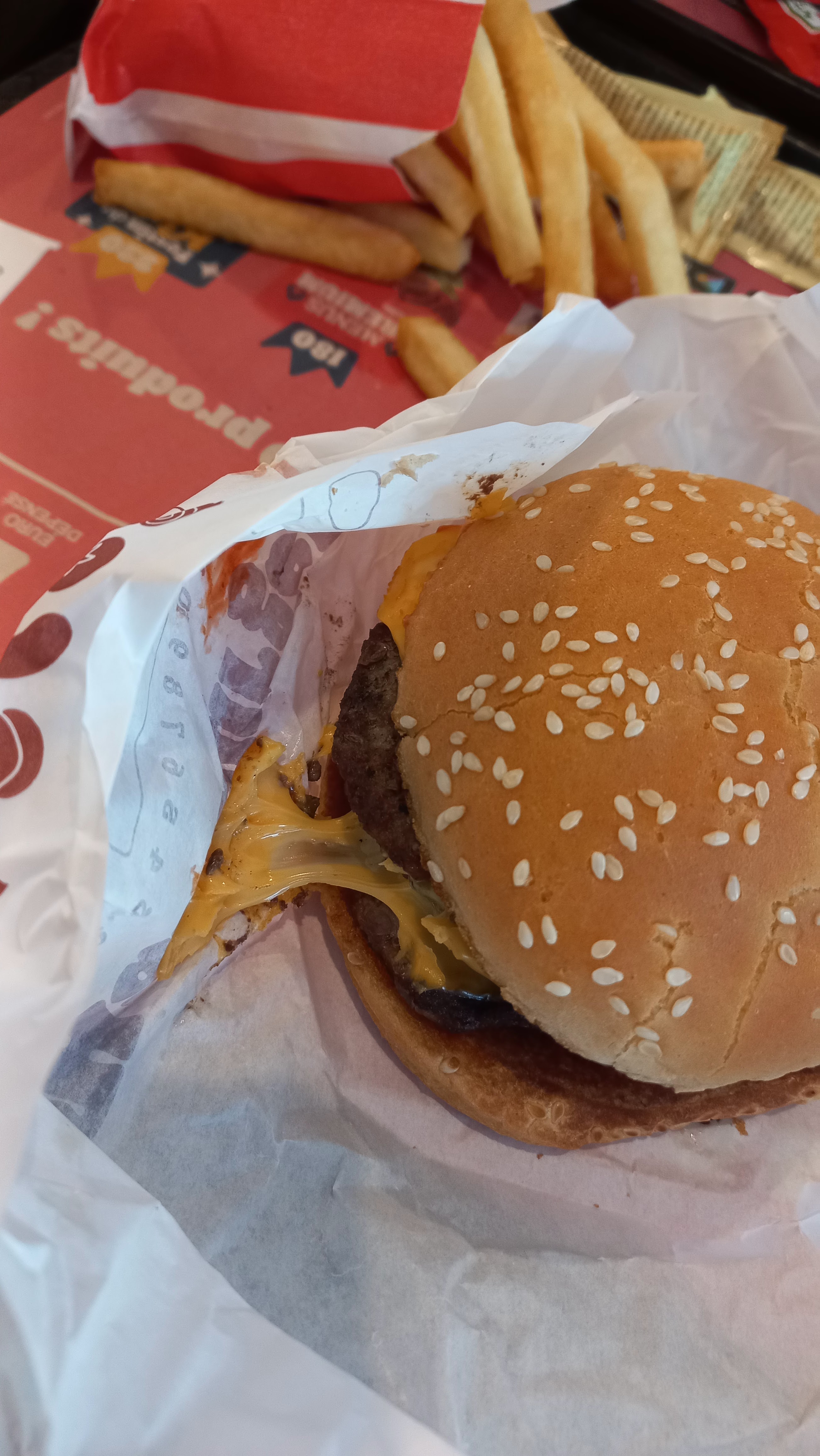 Le fromage du maître poulet était froid et sec, tandis que le triple cheeseburger (cf. image ci-dessous) était assez moyen. Les frites ont généralement meilleur goût dans les autres magasins Bk.