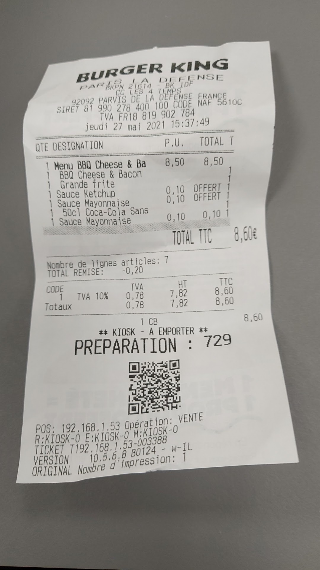 Bonjour, Burger King La Défense est toujours blindé de monde. C'est souvent long pour récupérer sa commande (qu'il faut vérifier systématiquement) il manque qlq fois des produits ou pas ce qu'on a voulu à la base. Malgré le grand espace pour manger sur place, c'est la galère pour se poser tranquille, dommage qu'il n'y ai pas des zones bien séparées (on est collé les uns aux autres) manque d'intimité. C'est pas mon resto préféré désolée :-(