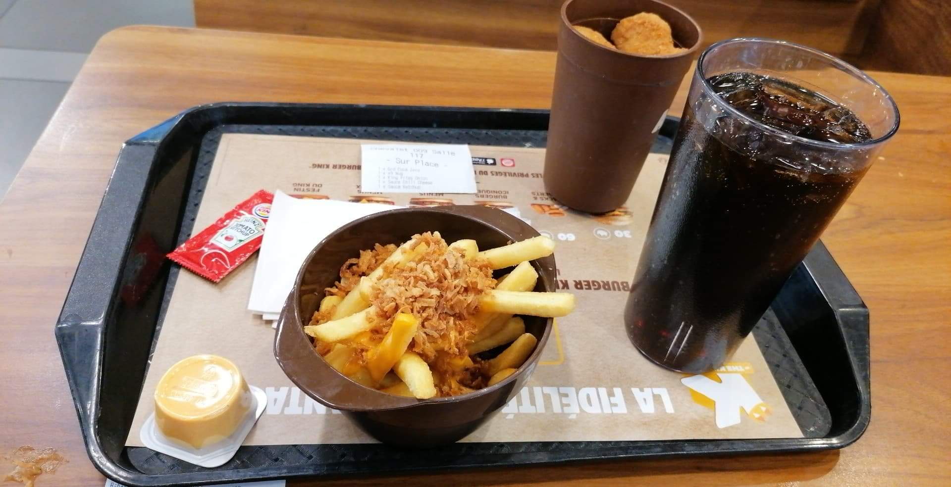 J’y retournerai pas j’ai pris ma commande ils nous ont pas appelé pour la payer et pour la récupérer je suis partie sans manger j’ai du manger autre pars j’y retournerai pas dans ce BURGER KING