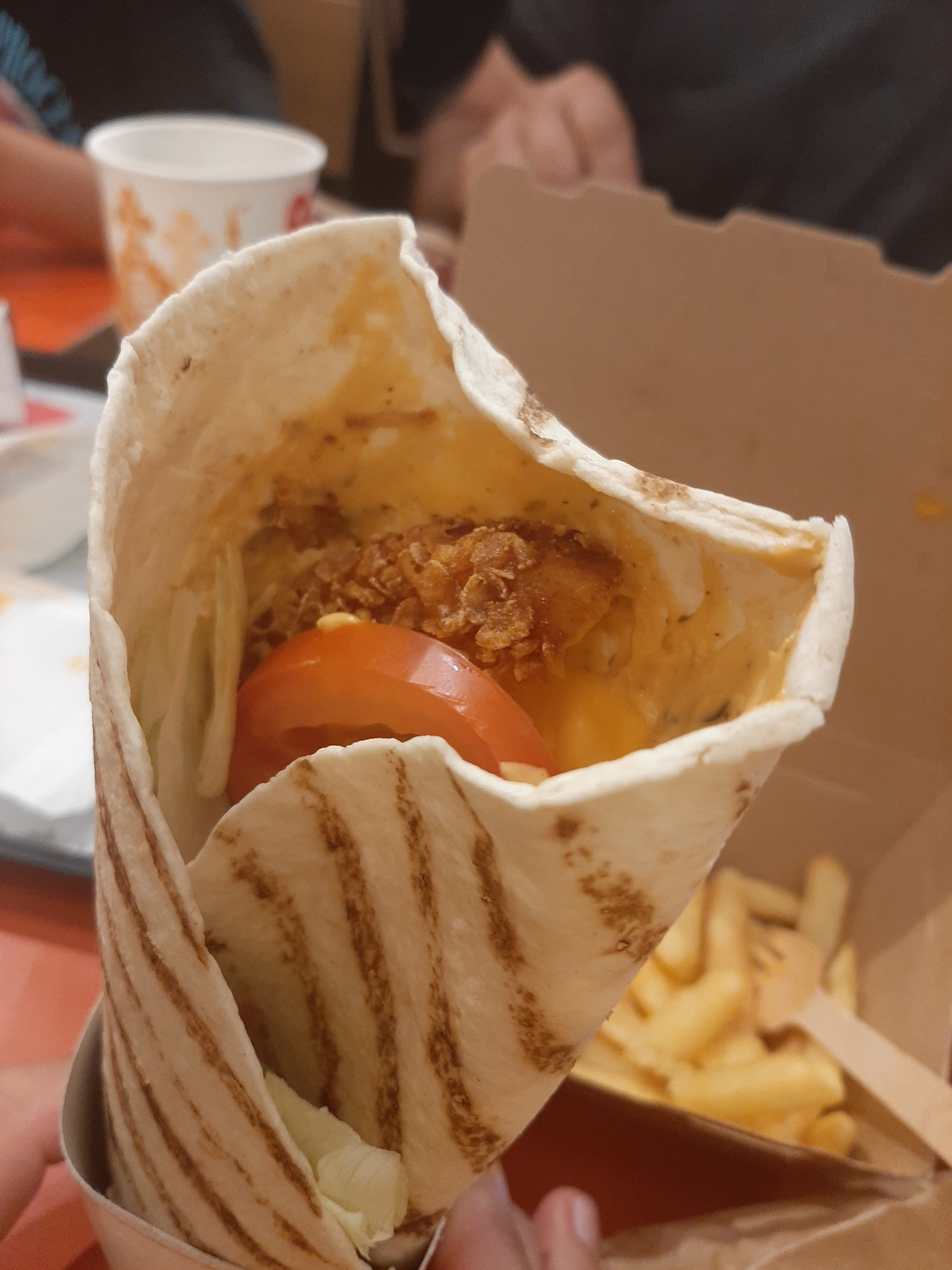 Une étoile car on peut pas mettre zéro on attendue pour un wrap dans un état pitoyable comme si on avait jouer au foot avec ,burger servie froid et on nous dit d'aller le réchauffer au micro ondes ... Et pas terrible .