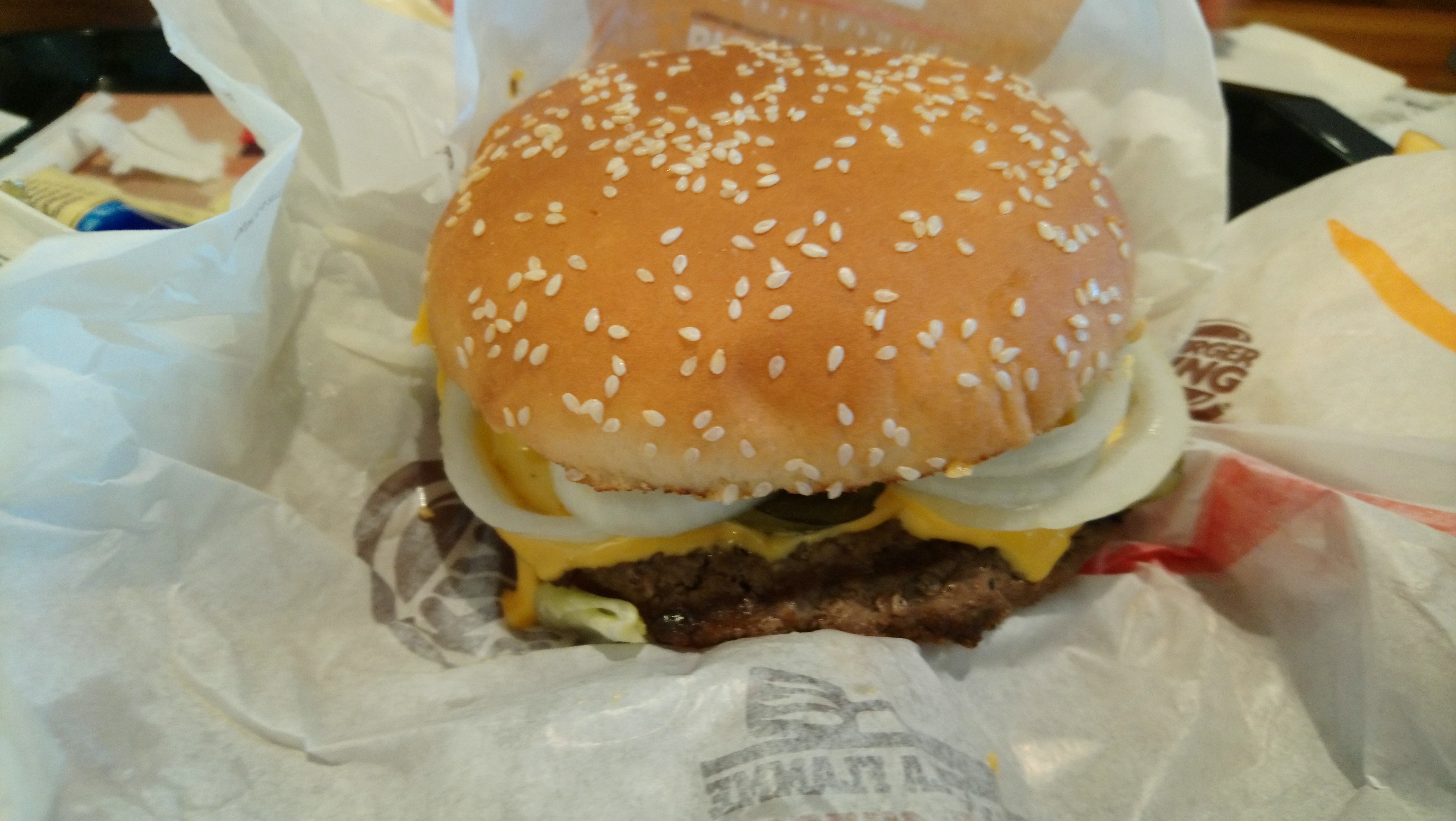 Pas bon, arrivée des commandes froides Pas réussi à manger le burger qui est revenu me rendre visite dans la nuit. J'ai connu burger King à l'étranger c'était bon, Mais là, non merci