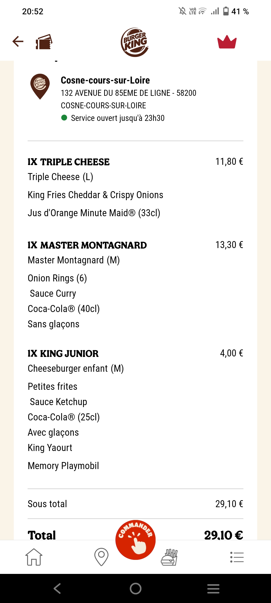 Malgres quelques oublis rectifiés, Nous sommes très satisfaits de Burger King cosne