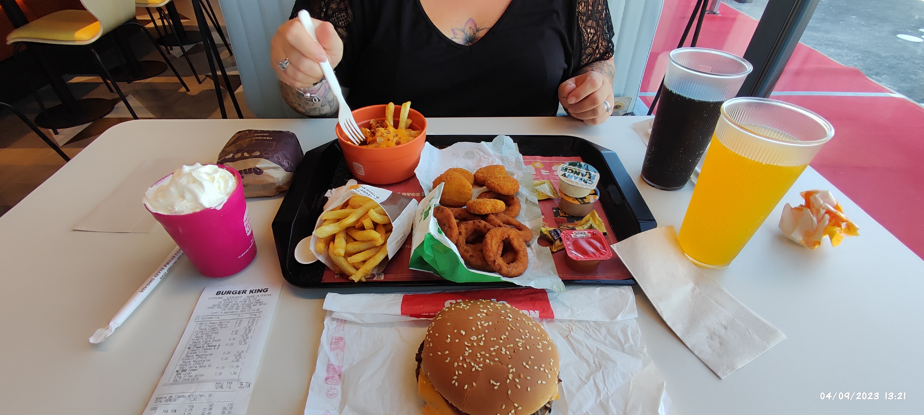 Très contente au niveau nourriture pas très contente du service car à chaque fois j'ai jamais eu ma commande complète le personnel rien a dire juste que je suis pas contente car vous avez reçu le dernier puzzle de la super patrouille et j'ai entendu dire que le ou la chef ne veux pas le mettre dans les menus enfants temps qu'il reste des autres c'est degeulase car venir manger à burger King tout les 2 jours je trouve la que c'est pas honnête car vous profitez des gens la en attendant.