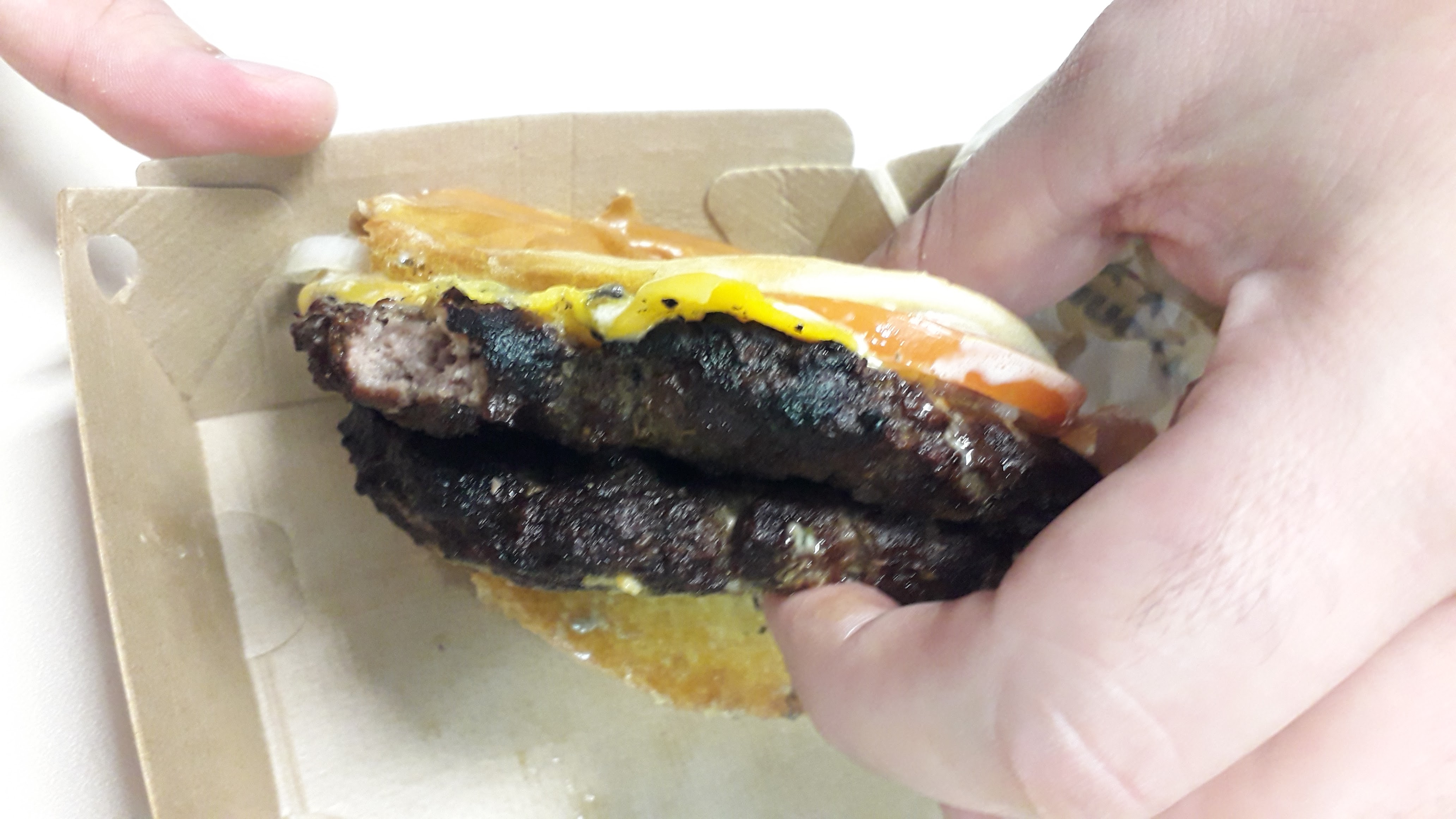 L’une des rares fois où j’ai été un peu déçu. J’ai commandé un double cheese bacon sans cornichon. Résultat lorsque je suis arrivée chez moi je me rends compte que mon burger ressemble à un double cheese sans bacon, et avec des cornichons. Les frites manquaient un peu de cuisson. Et quelle ne fût pas ma surprise de voir qu’il y avait des morceaux de sésames dans le mini king fusion M&M’s. Expérience un peu bizarre !