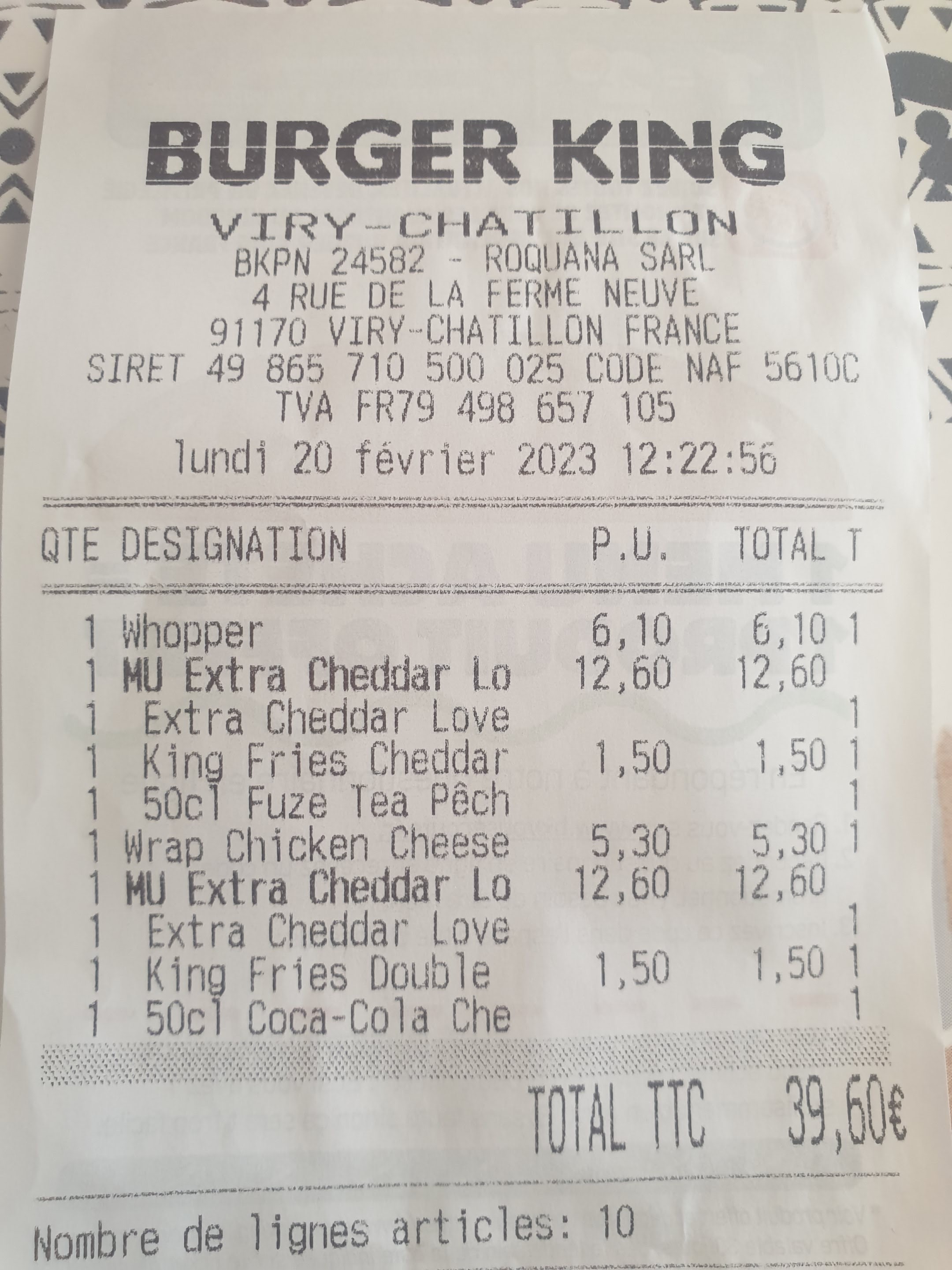 Burger king viry Châtillon Commande reçue rapidement