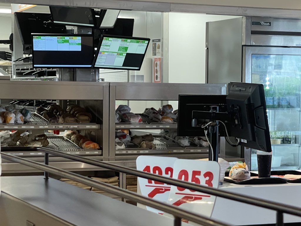 Désorganisation totale. Des déchets plein partout dans la cuisine. Le personnel ne quittance pas les commandes sur les écrans du coup les commandes ne défilent pas et on ne sait jamais quand la nôtre est en préparation ou prête.