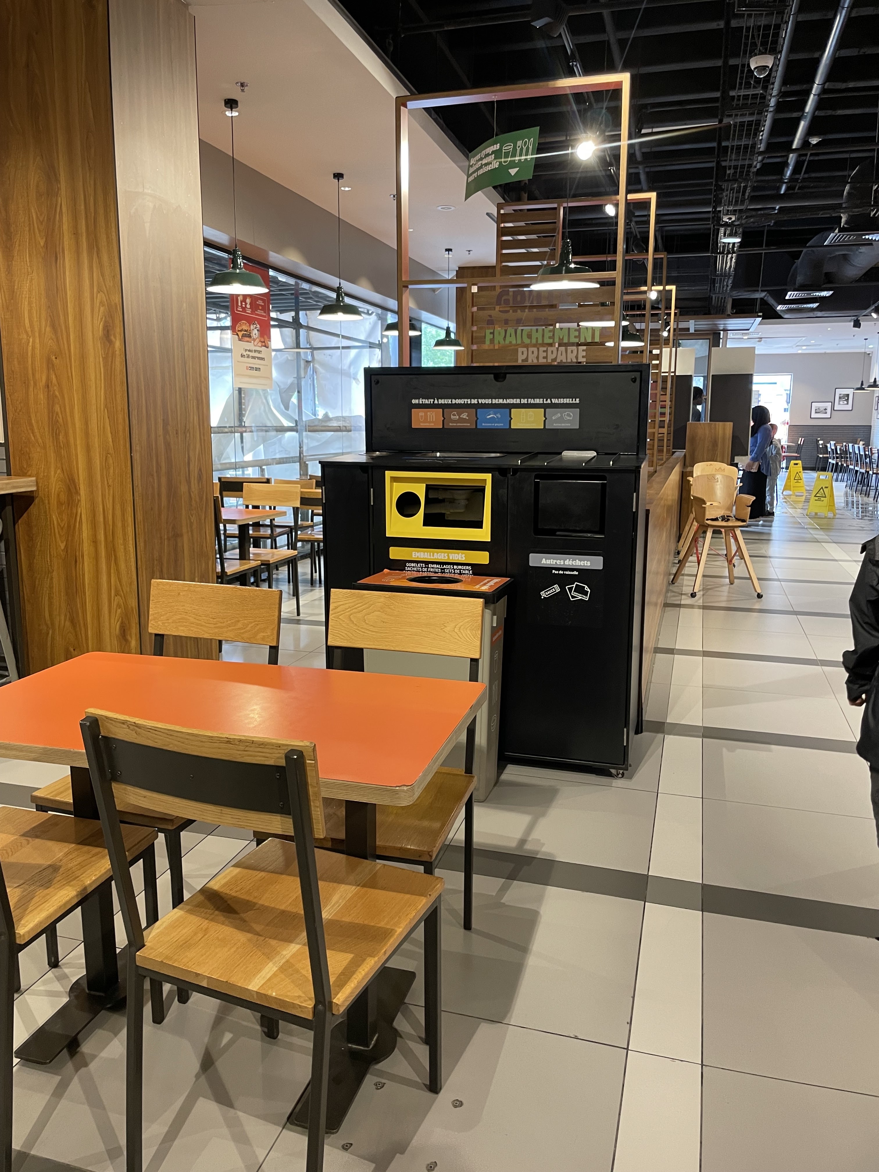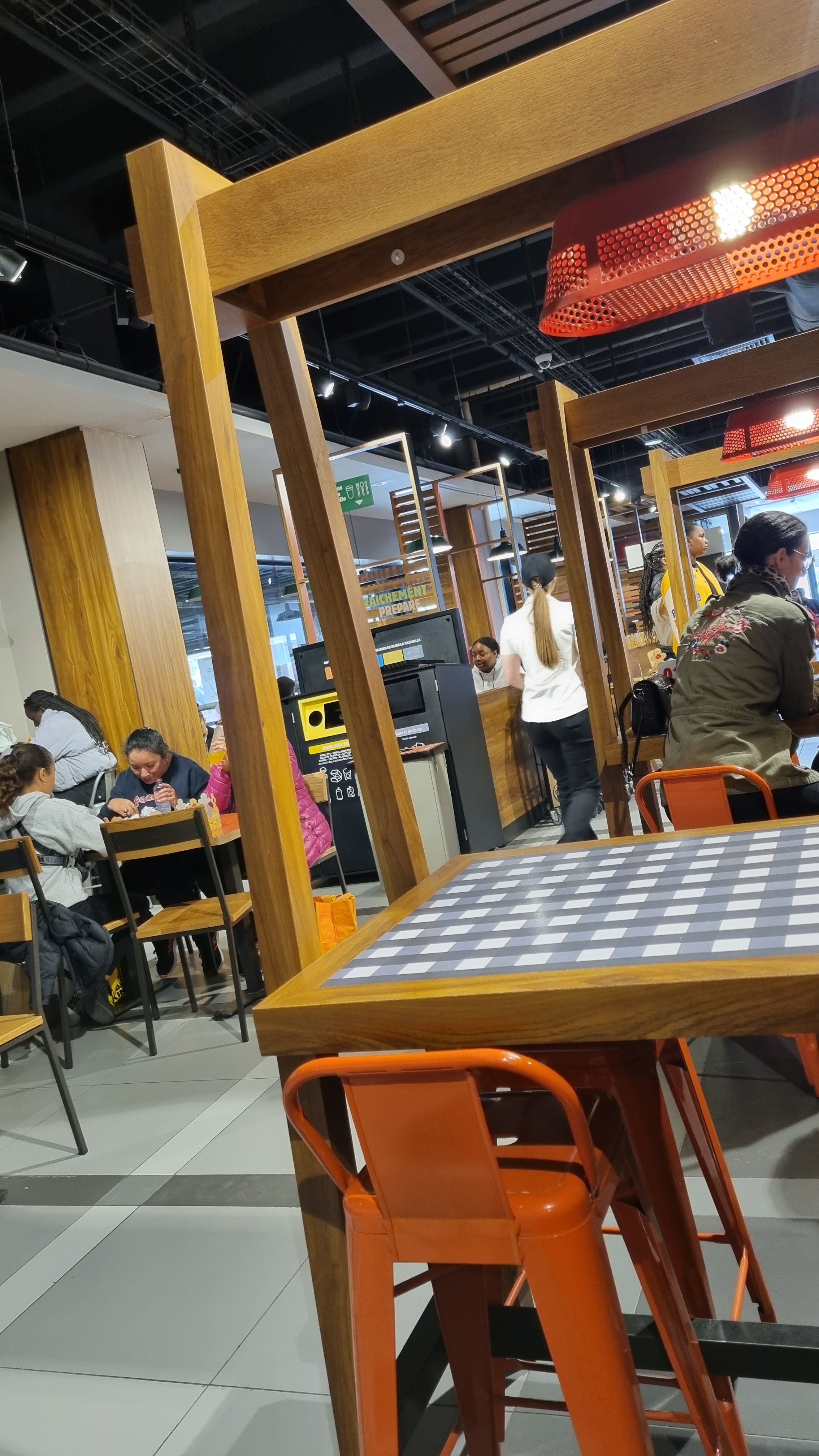 Lieu propre et personnel d'entretien sympa...Service rapide... Voir un peu trop car 3 erreurs concernant 2 menus enfants, ça fait beaucoup... Et des sandwichs froids!!!
