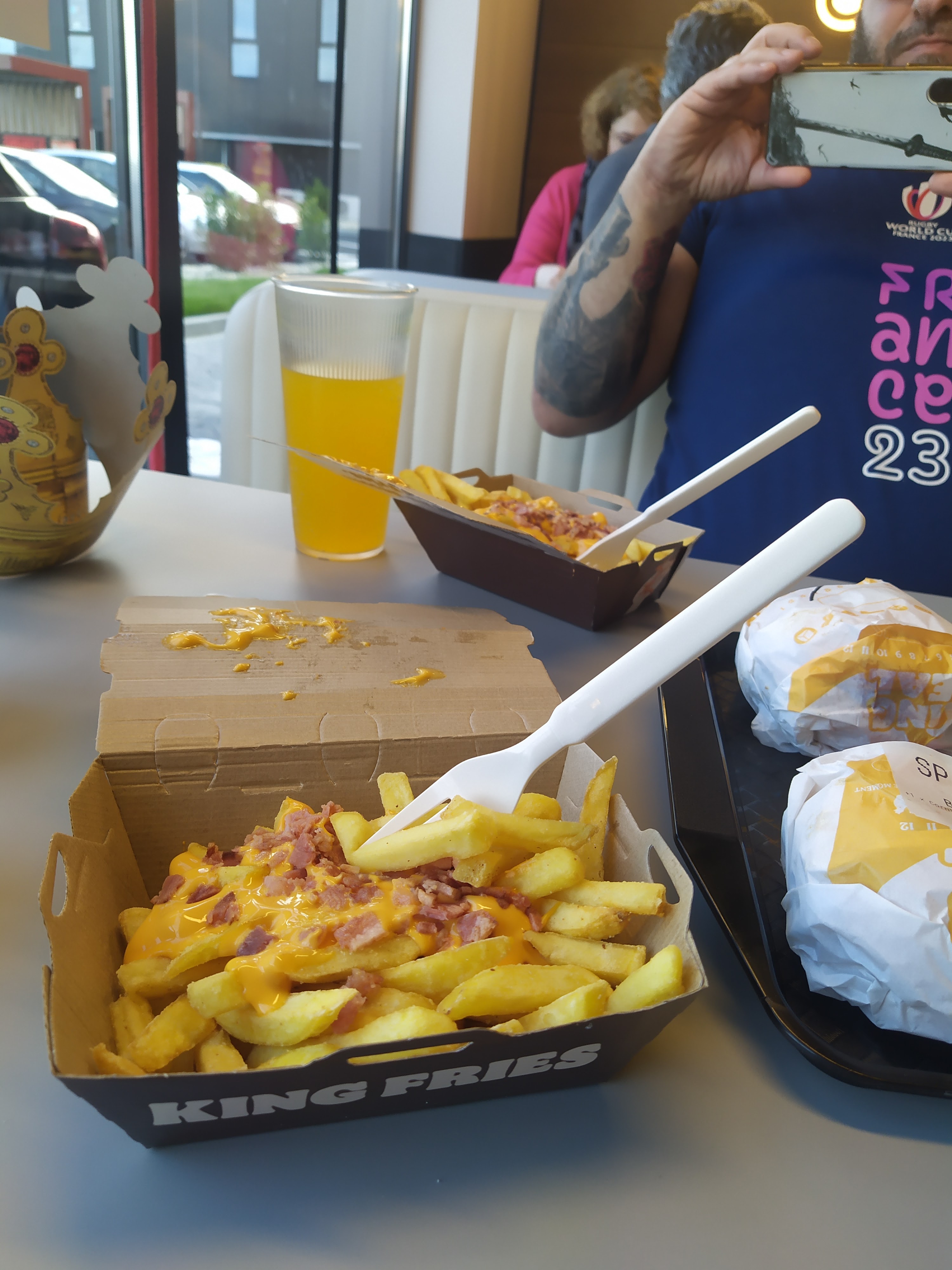 Bon nous aurions dû regarder les derniers avis sur ce burger king. La non pas possible .. car déjà obligé de demander de nettoyer les tables car vraiment pas top mais le pire reste à venir, 1er menu, double cheese xl et reçu un burger enfant avec que 1 steak et sans tomates. Et petite frite. 2eme menu xl avec king fries le master cantal très bon, et les frites avec vraiment rien en cheddar et bacon et surtout une boisson de 50cl remplie à un peu moins de 40cl. 3eme menu bizarre rien à dire. La c'est la dernière fois que nous nous arrêtions à ce burger king alors qu'il est à côté de chez nous. Étant moi même dans le management certains membres de l'Equipe sont à changer.