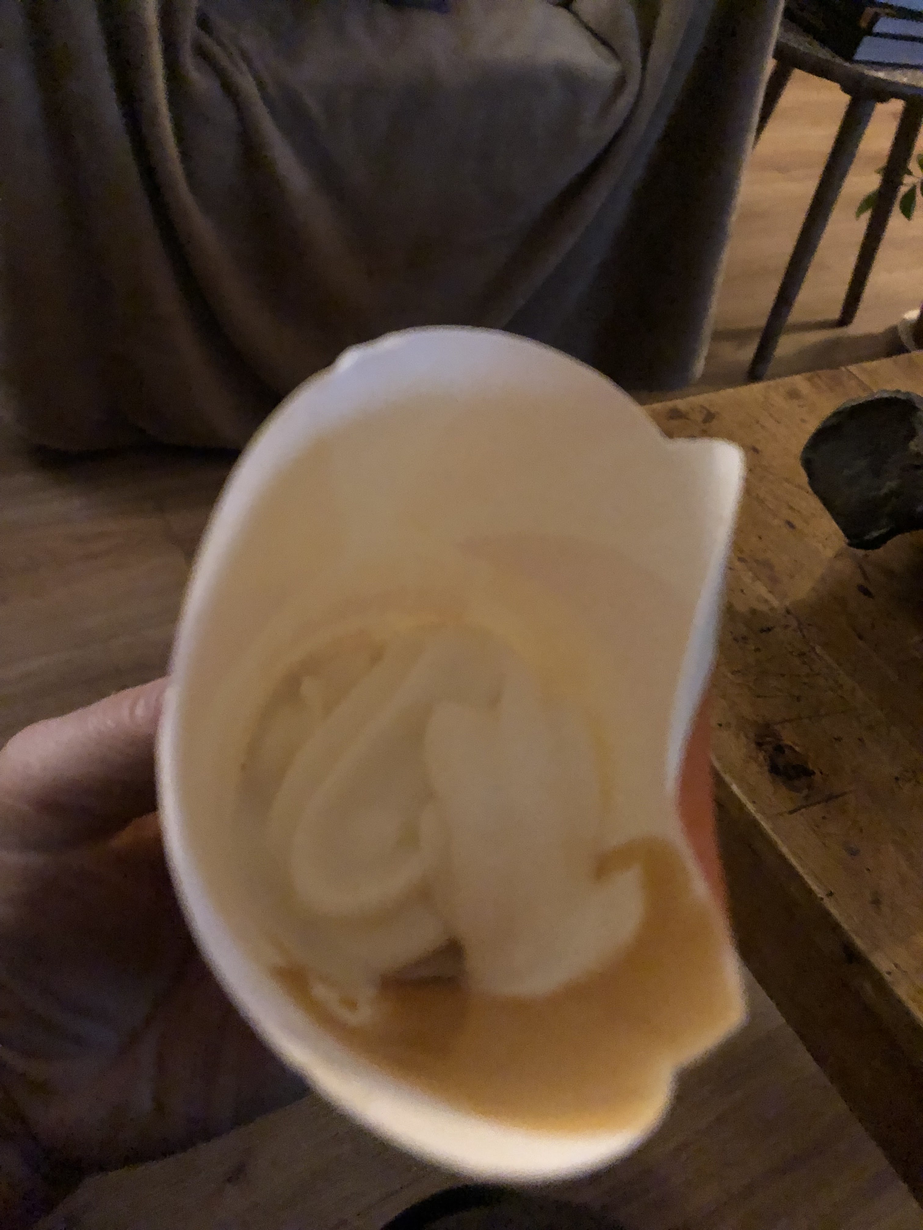 Première visite dans ce Burger King proche de chez moi . Je commande un sunday caramel . Dans le pot , 1/4 de crème vanille le reste est … vide . L’arnaque quoi ! Pas près de revenir