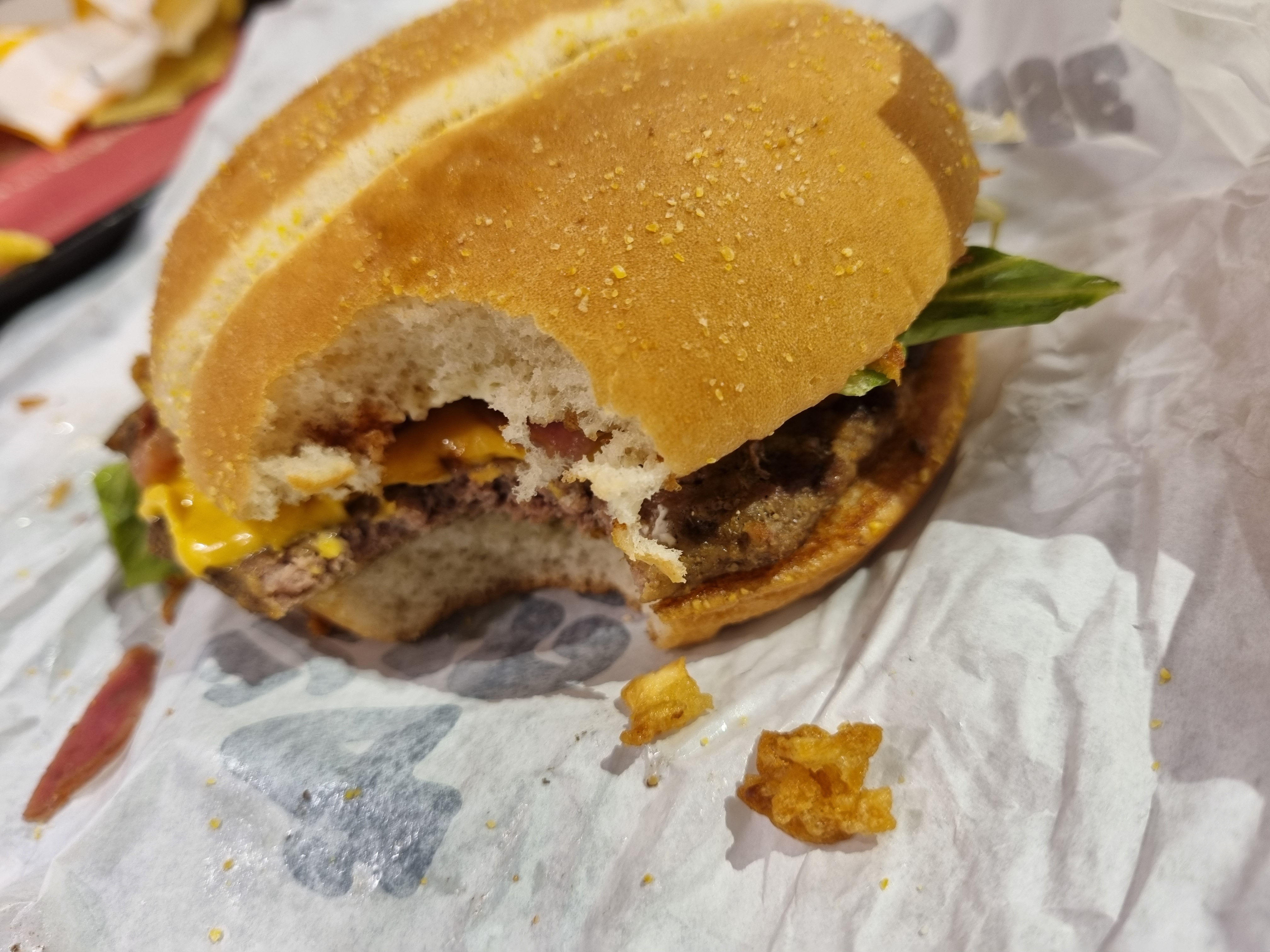 Adieu mon Burger King d'antan. Je comprend a présent les scandales sur les fastfood MacDonald&BurgerKing aux US. (Simple recherche google pour en apprendre plus sur la fameuse shrinkflation) Il y a même pas 1 an encore, j'etais un habitué (1 a 2 fois par mois voir plus dans ma jeunesse) et toujours les mêmes menu : Un menu medium avec un gros burger du moment + 1 Whopper. Et j'avais du mal a finir ma boisson tellement mon appétit etait comblé. J'y suis retourné ce soir, c'est une honte J'ai pris ma commande habituelle, et ma femme un menu complet. 32€ au total pour au final ressortir en ayant encore faim. La taille des burgers ont diminué, sans en baissé le prix bien sure et sans aucune annonce concernant cette réduction de taille. Triste réalité, un tel fastfood n'a plu lieu d'etre quand pour le meme prix, dans un restaurant, on mange bien plus copieusement... Adieu les gros burger qui calent, triste époque terminée... sauf si vous pouvez vous payer pour 28-32€ de repas/personne. Mieux vaut aller se faire un Poke Bowl en centre ville de caen ou encore un bon Kebab ou tout simplement un burger en RESTAURANT.