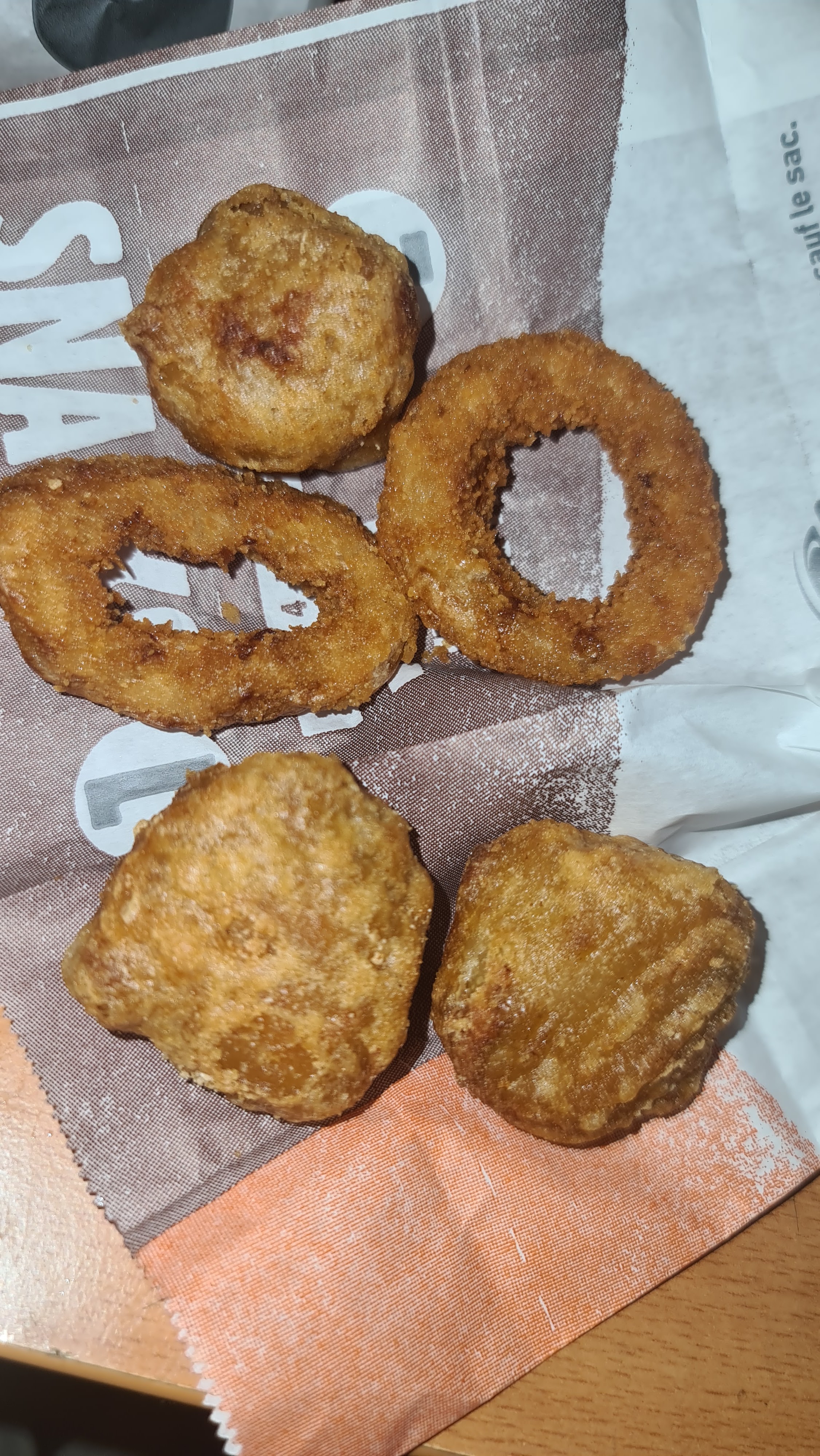 Je prends TOUJOURS des onion rings et des Chili cheese dans tous les BK, mais là pour ma première vite à pertuis ils ressortent tous cramés, comme cuits une deuxième fois pour être réchauffés, et pour les mauvaises langues comparez avec la photo du site. Dommage personnel sympathique et très peu d'attente en ce jour.