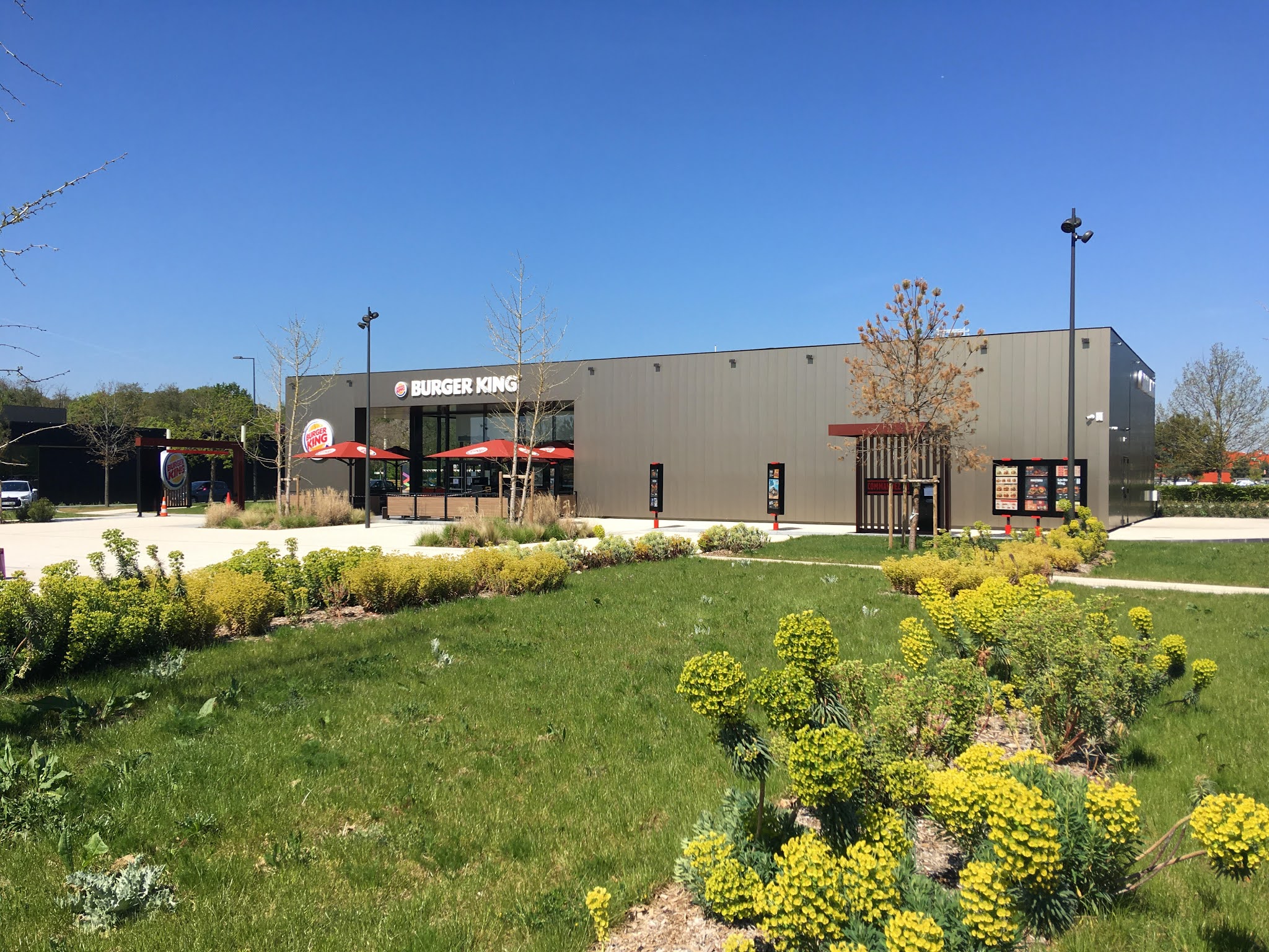 Un restaurant Burger King comme les autres, rien d’extra ordinaire. Des bornes automatique pour passer ses commandes, et livrée à table. Salle moyennement propre. Restaurant sur un grand parking, et donc aussi pour la terrasse.