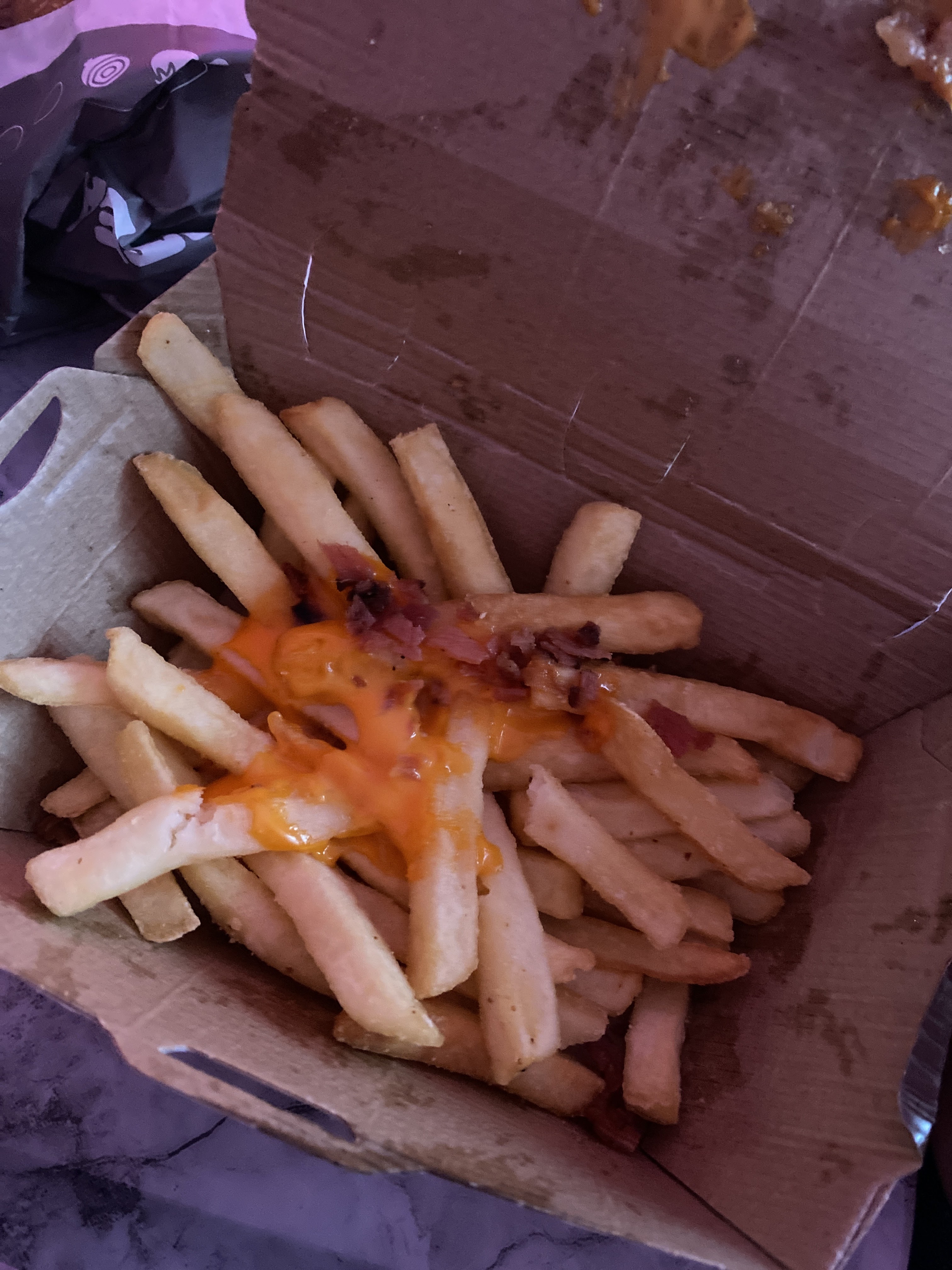 J’ai commander frite avec bacon et cheddar je n’est pas vue ou était le bacon.