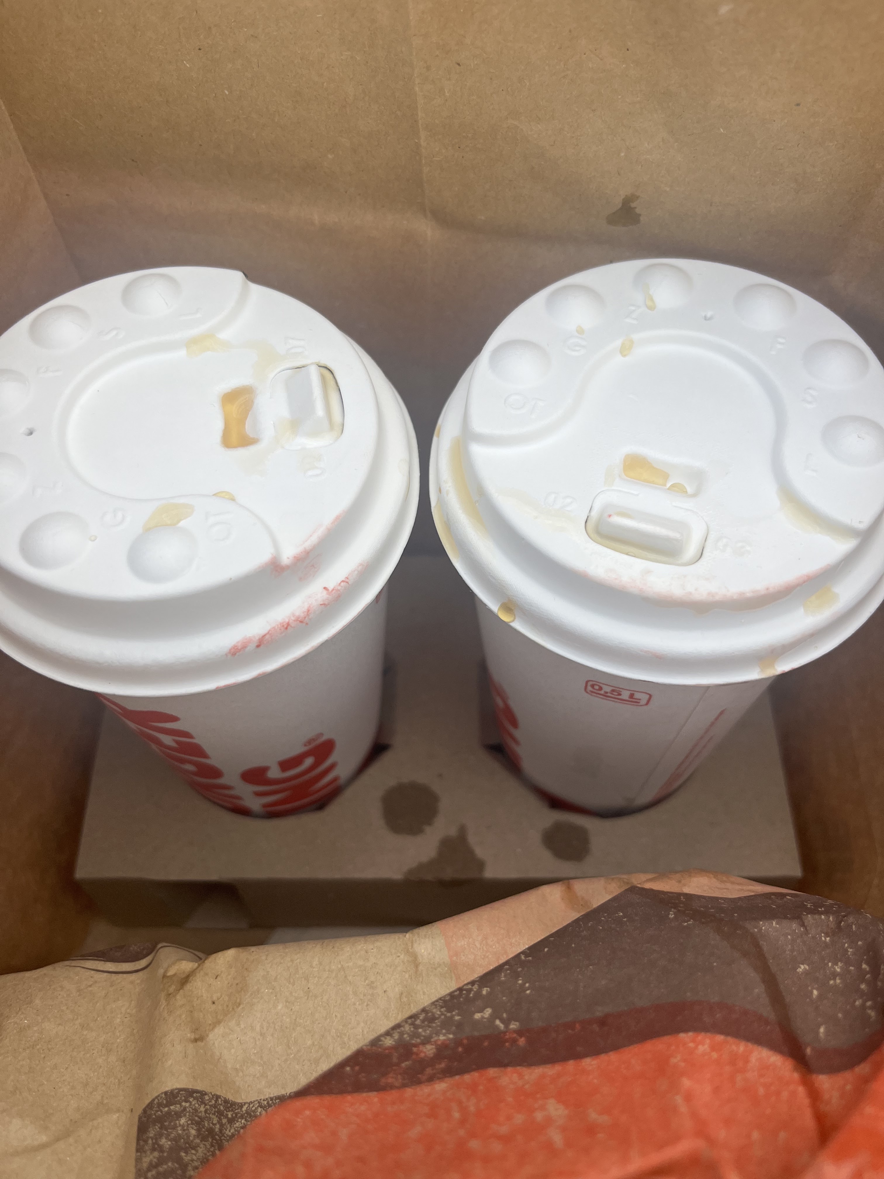Comment expliquez vous ces grosses marques de rouge à lèvres sur une commande qui vient d’être donnée ? Les préparateurs se mettent à boire nos commandes avant de nous les donner ? Manque d’hygiène et de professionnalisme impressionnant.