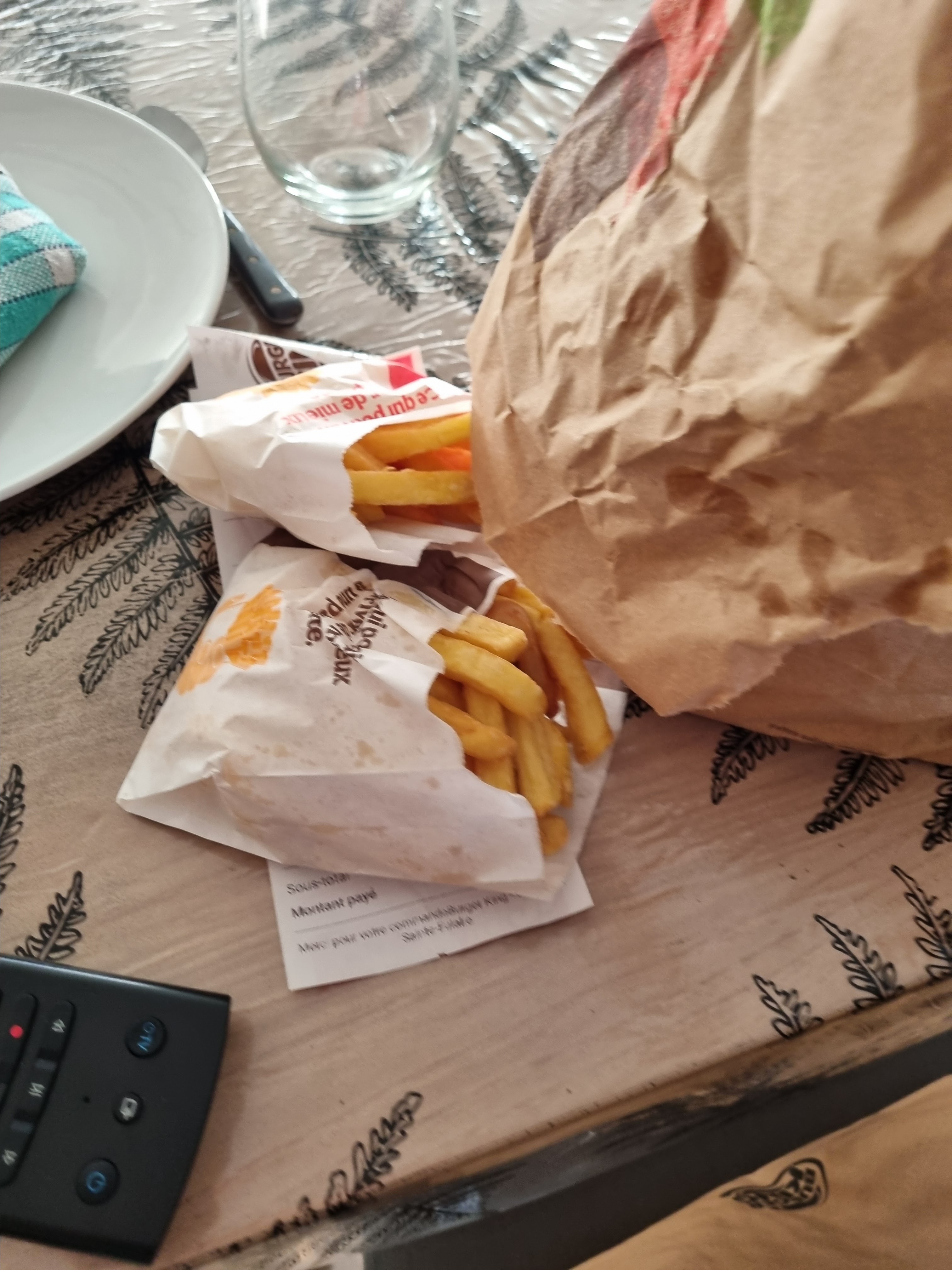 Commander avec uber eat Livraison nickel Manquer les frite de mes enfants ainsi que les mienne Burger King devrais bien vérifier leur commande car on attend beaucoup pour finalement pas avoir sa commande entière