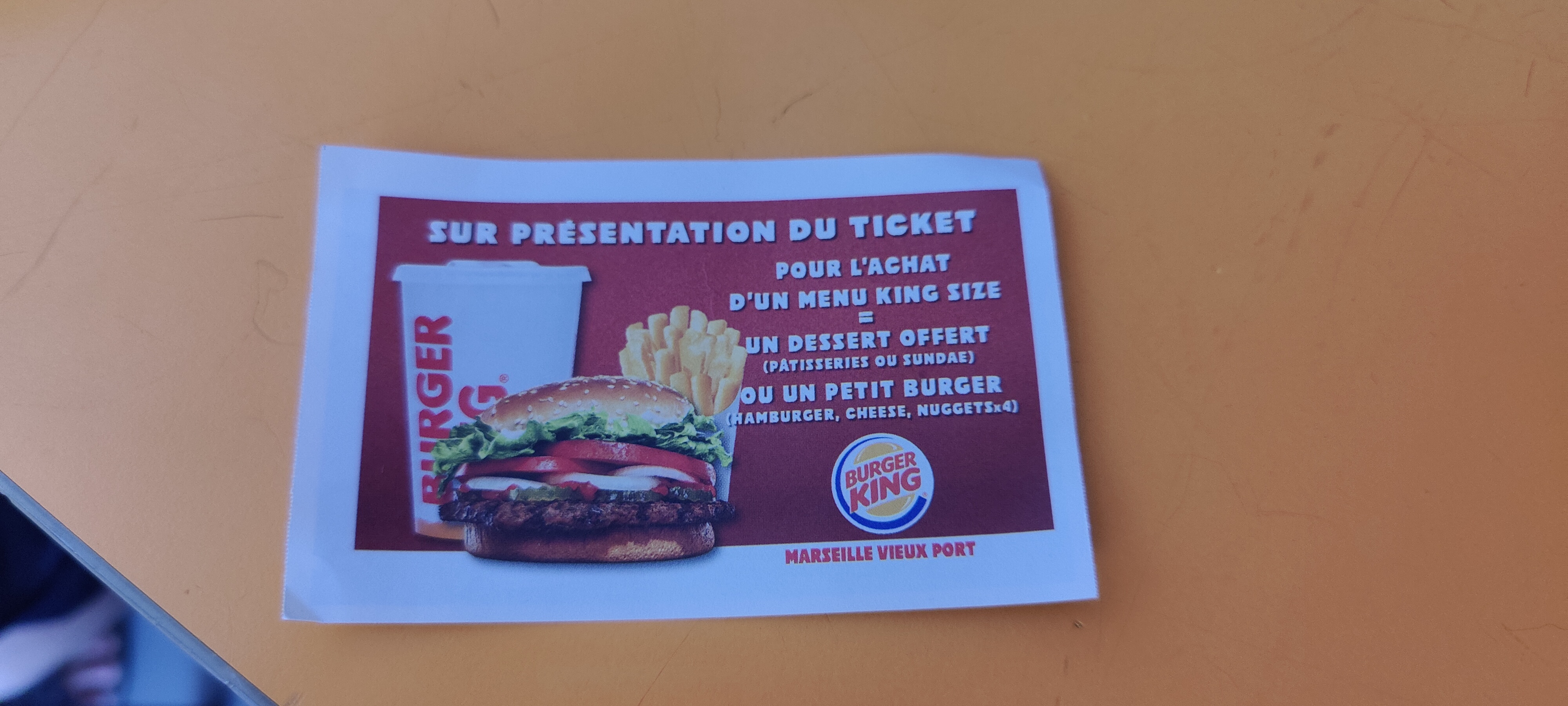 Salut salut, j'ai mangé à ce burger King et c'était très bon déjà. Les prix sont sympa surtout les promos étudiants. Le service était rapide et l'équipe sympa. J'ai adoré la vue sur le vieux port, voilà!