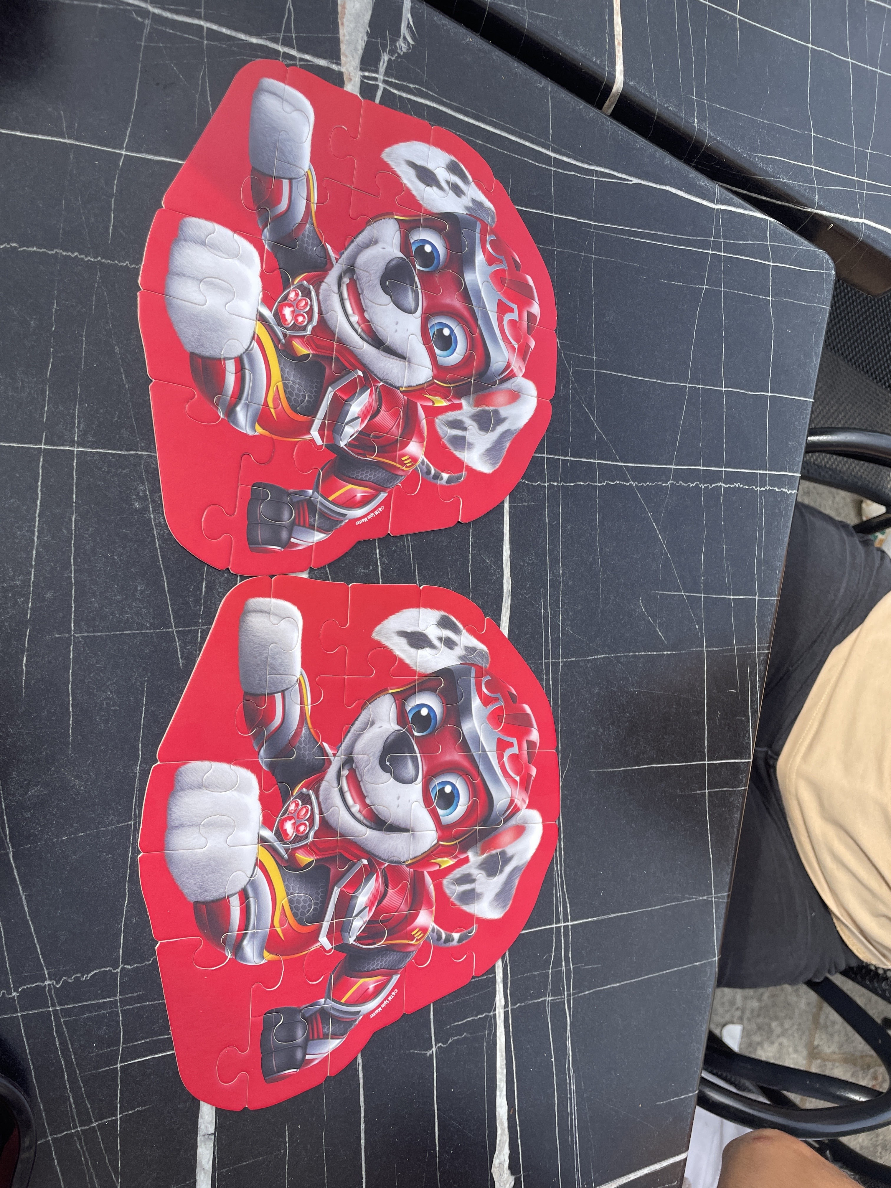 Avis : BK PUZZLE PAT PATROUILLE Je viens de finir de construire le chef-d'oeuvre qu'est ce puzzle, et que dire si ce n'est que l'on fait face à une masterpiece de notre génération !! Le puzzle defie les codes du casse-tete classique et joue avec nos sens sans relache. Pour avoir tenté de le faire sans exemple à coté, le finir était ardu, mais le résultat final etait grandiose et en valait la chandelle. Note finale : 5/5 Je recommande et referais ce puzzle avec joie !!!! (La nourriture était bonne aussi)