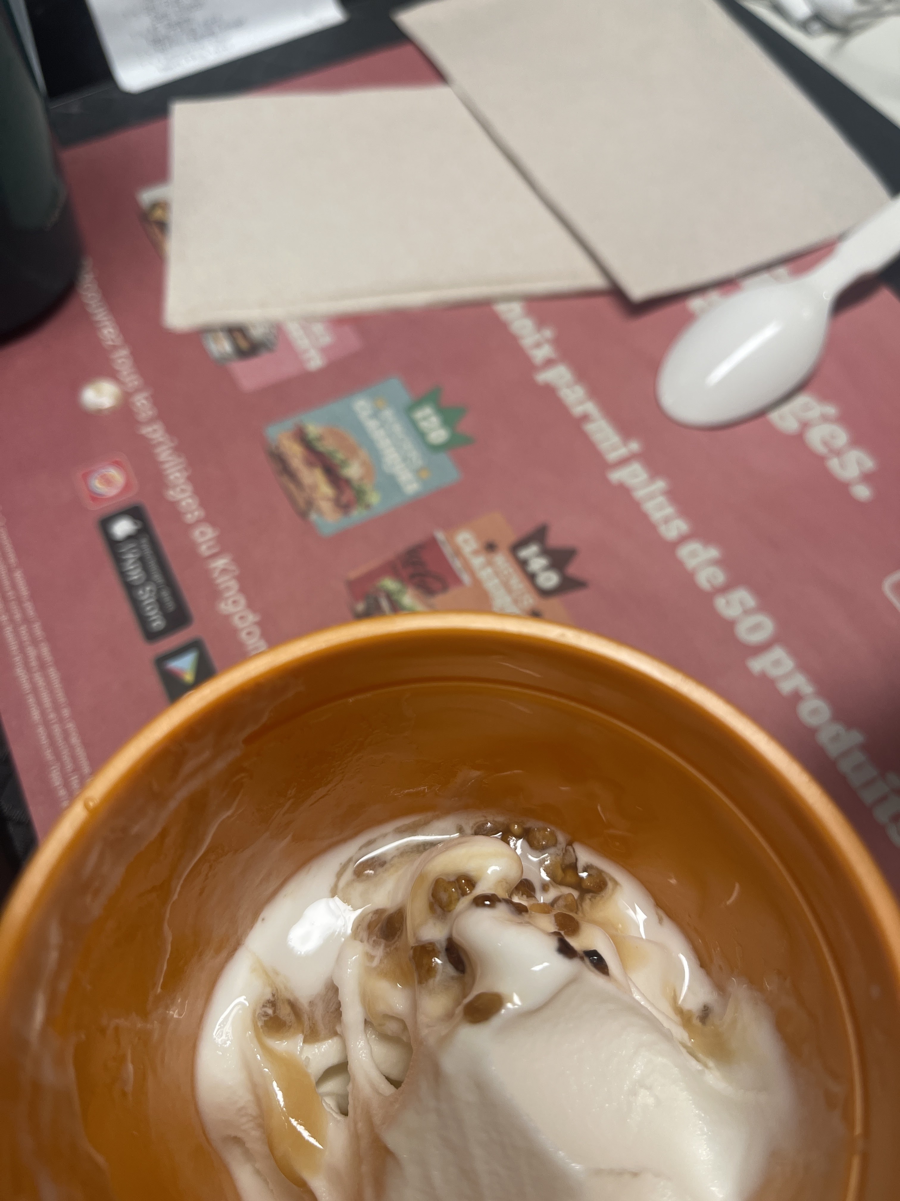 Très satisfait de la nourriture rapide bon et chaud. On m’a demandé de mettre 5 étoiles contre une glace et un café. Du coup rien que pour ça je met une étoile. Si on m’avait demandé simplement de noter j’aurai probablement mis 5 étoiles. Mais non, on n’achète pas tout le monde très cher manager.