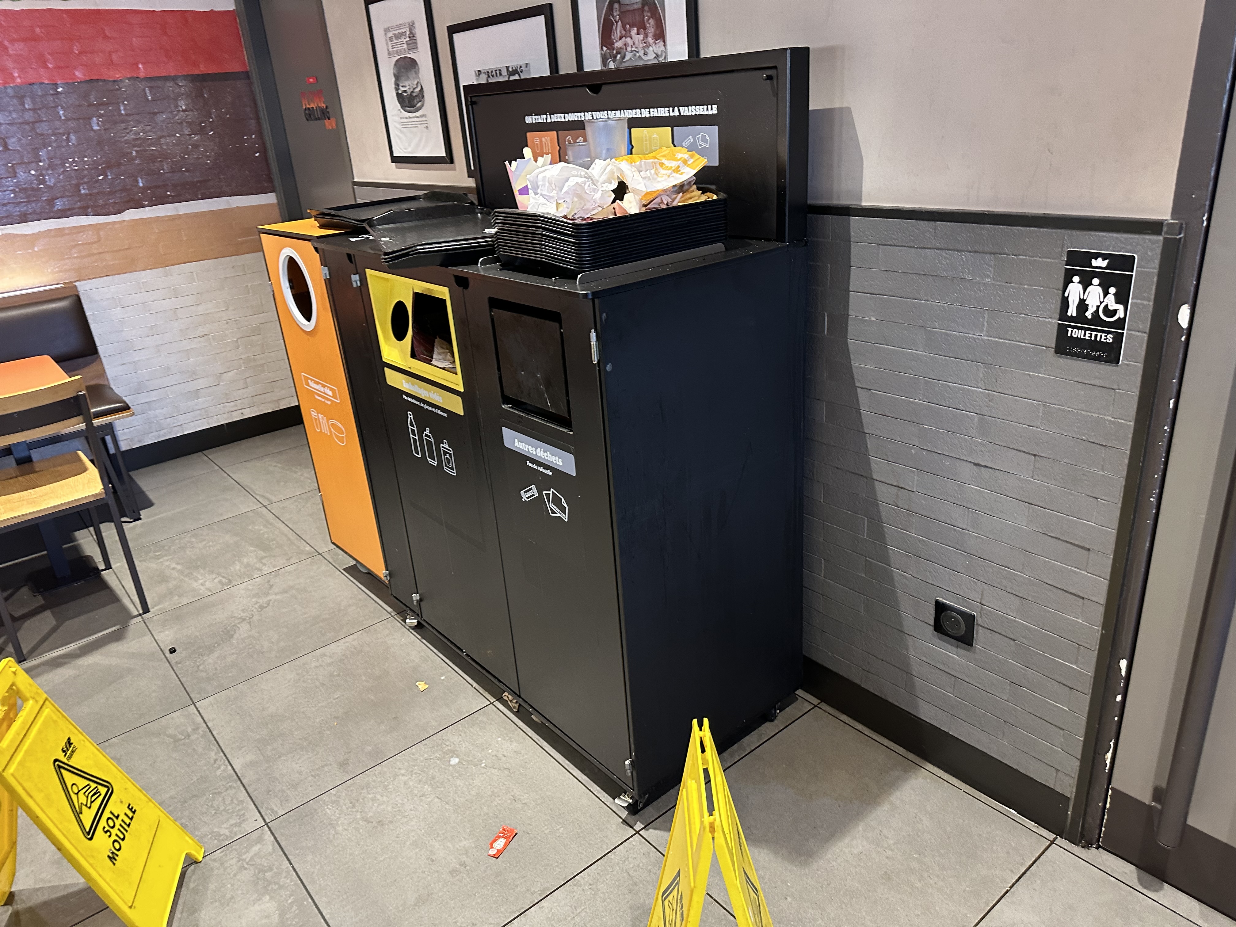 Très sale, WC qui sentent pas bon, pas nettoyé, moucheron vers l'espace vide plateaux, de l'eau/boisson partout par terre, des déchets par terre, ... Le personnel m'a dit quelqu'un va passer, au vu des autres avis, ils ne sont pas passés et passeront jamais !