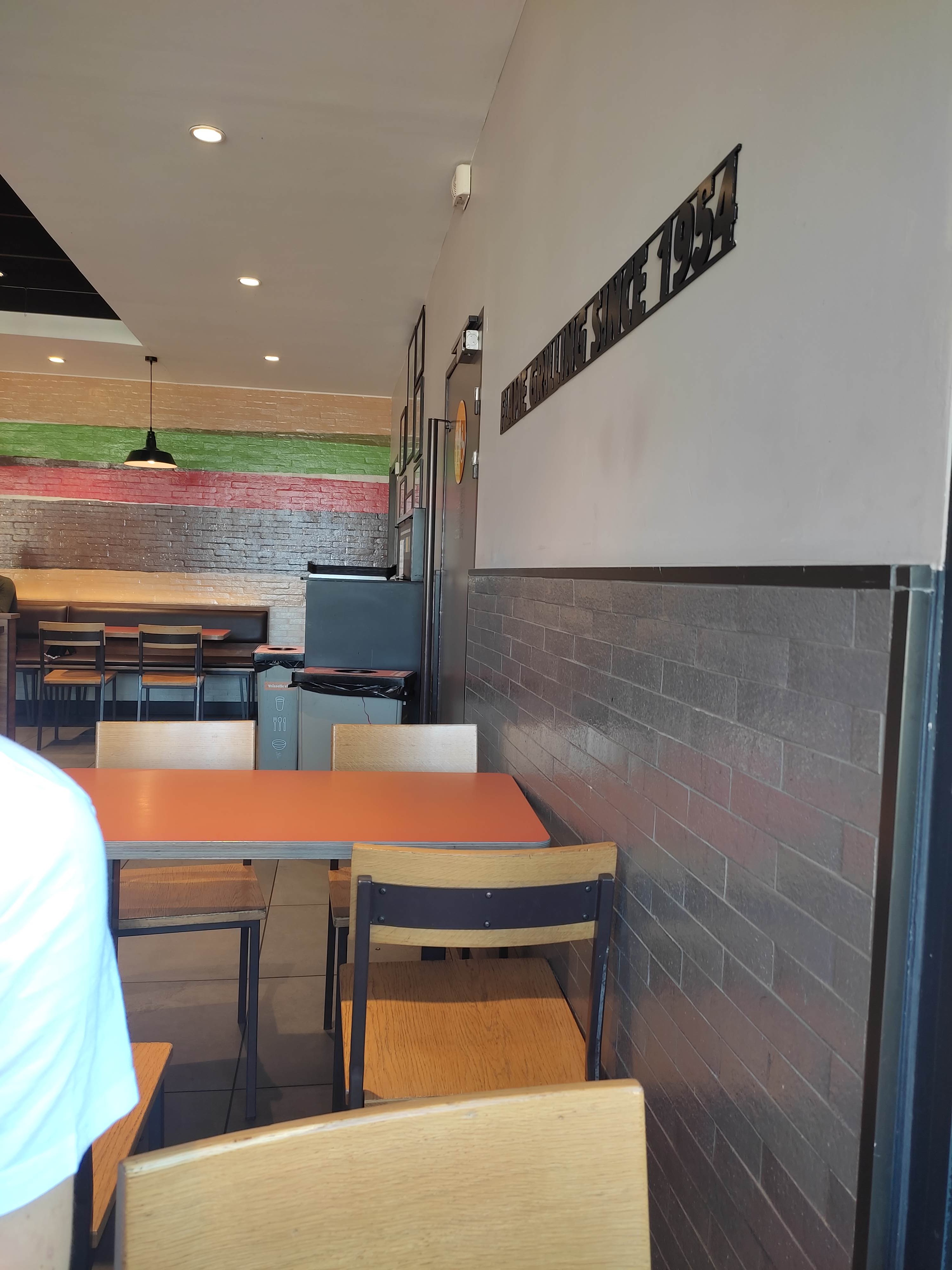 Pire fast-food ever. Jamais vu une salle aussi crade. Les chaises hautes pour enfants sont degueulasses, le sol poisse, les tables sont dégoûtantes. Le burger était immangeable, le steak froid. L'alarme incendie a sonnée pendant 10 min non-stop. Vaut mieux crever de faim que d'aller là-bas.