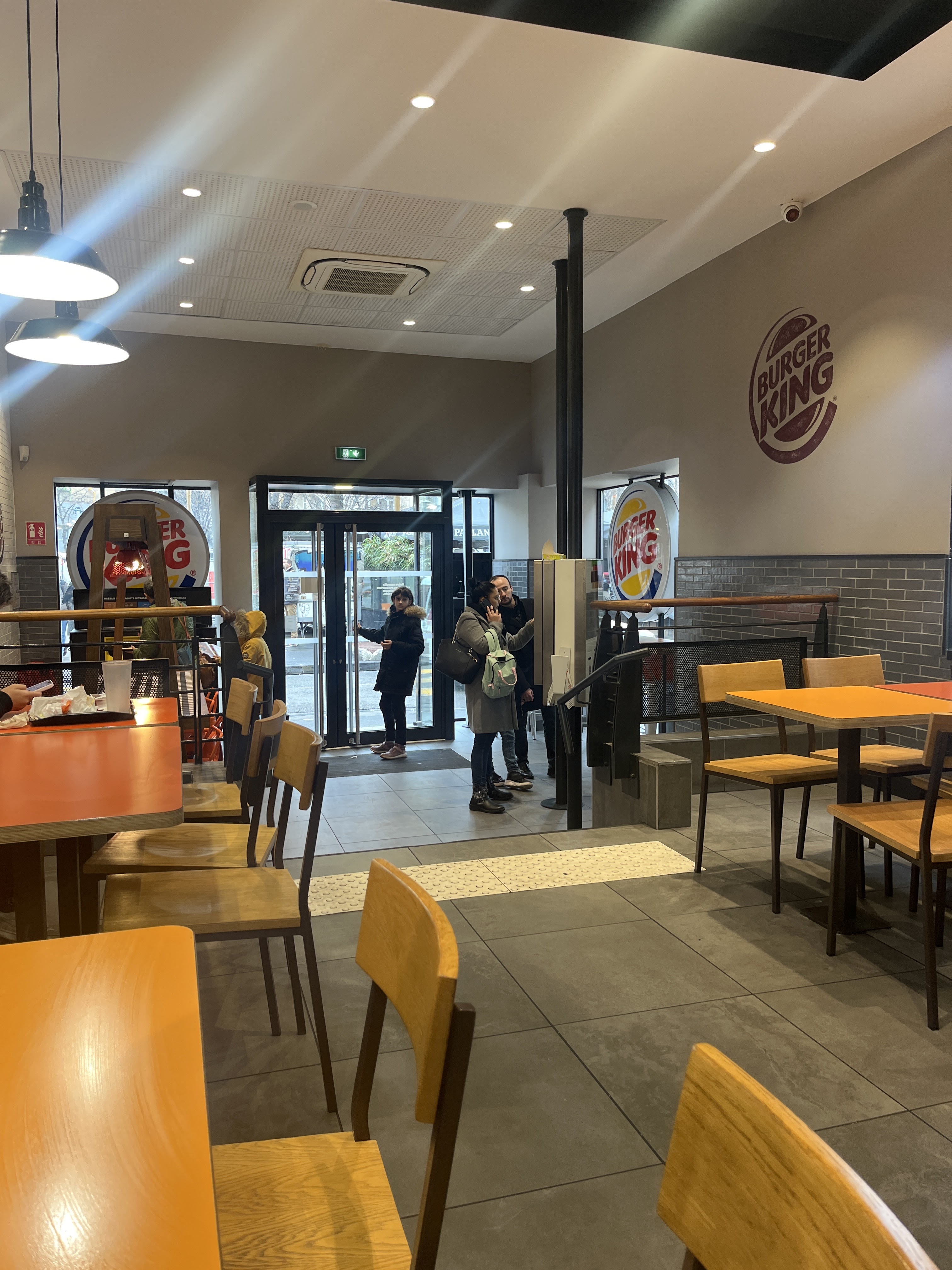 On mange Burger King dans un lieu pas extrêmement propre. Rien de plus à ajouter