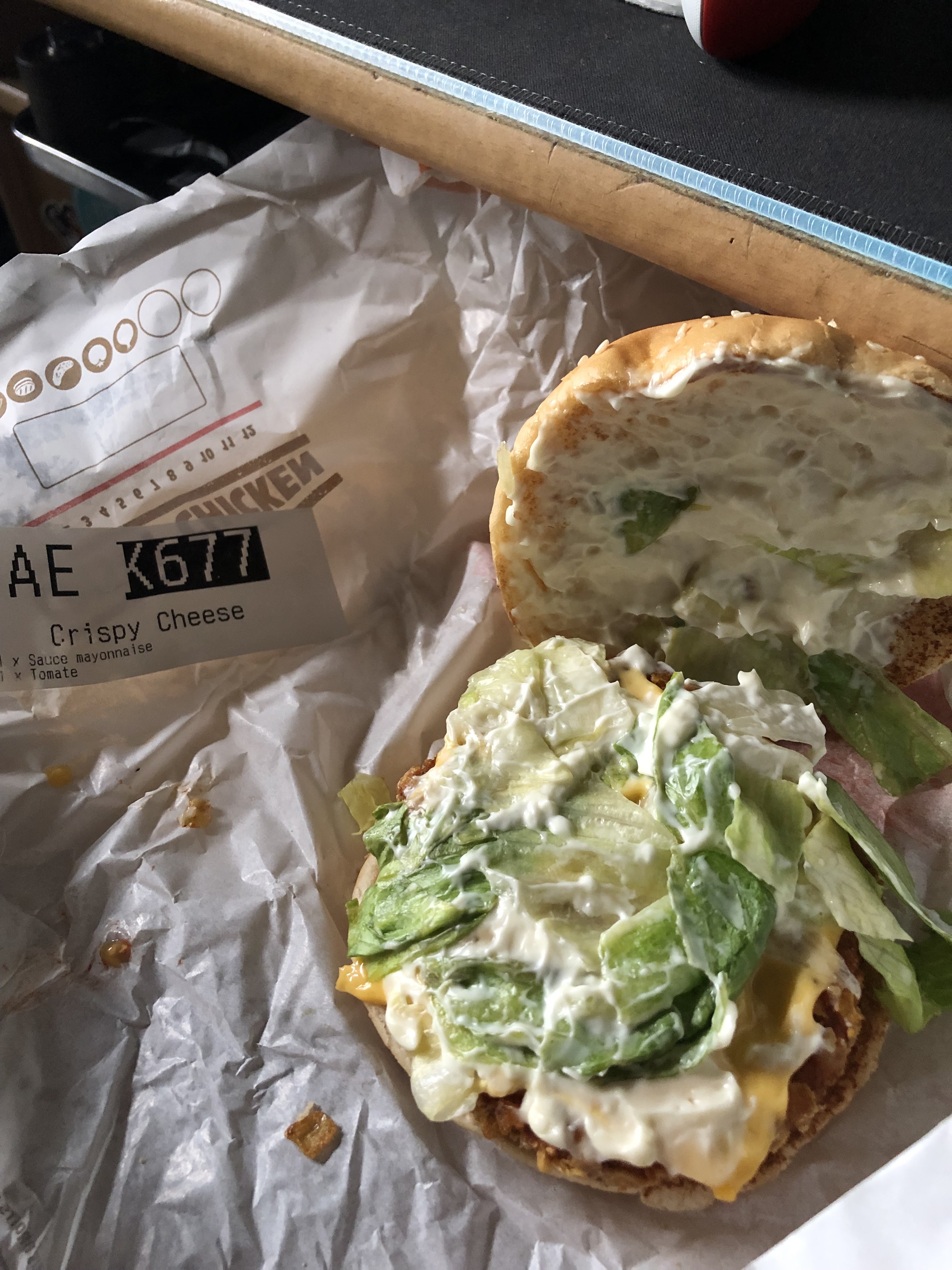 Voulant se rassasier après s'être longuement promené sur le marché de Noël, nous nous sommes arrêtés au burger king du centre ville. Force est de constater qu'il est difficile voir impossible de rentrer le crousti chèvre de 2,50 cm dans le petit pot de creamy ranch de 2,30 cm de diamètre sans le sectionner au préalable faisant perdre à celui-ci tout son aspect rondement appétissant. De plus, il est parfaitement dommageable de le couper en deux, car cela crée une déperdition de chaleur intérieure (~30, 40% de chaleur perdue) ce qui est regrettable pour le voyage culinaire que promettait l'enseigne burger king. É le sachai de té frui rouge étè troer. Au plaisir de vous voir corriger ces imperfections !