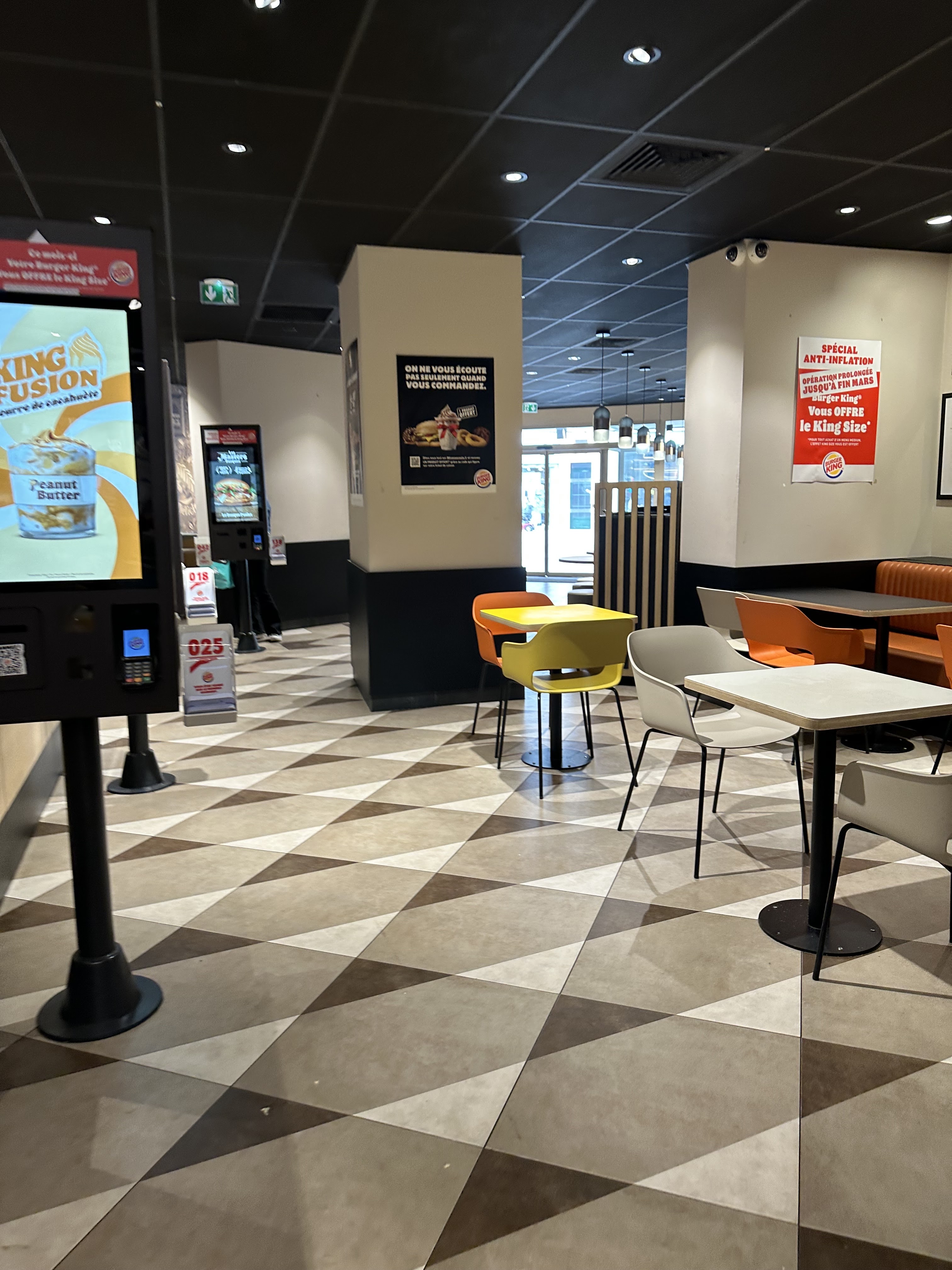 On se régale et le service est très rapide ! Seul bémol : l'organisation de la salle et la déco sont un peu sommaires, même comparés à d'autres restaurants Burger King.