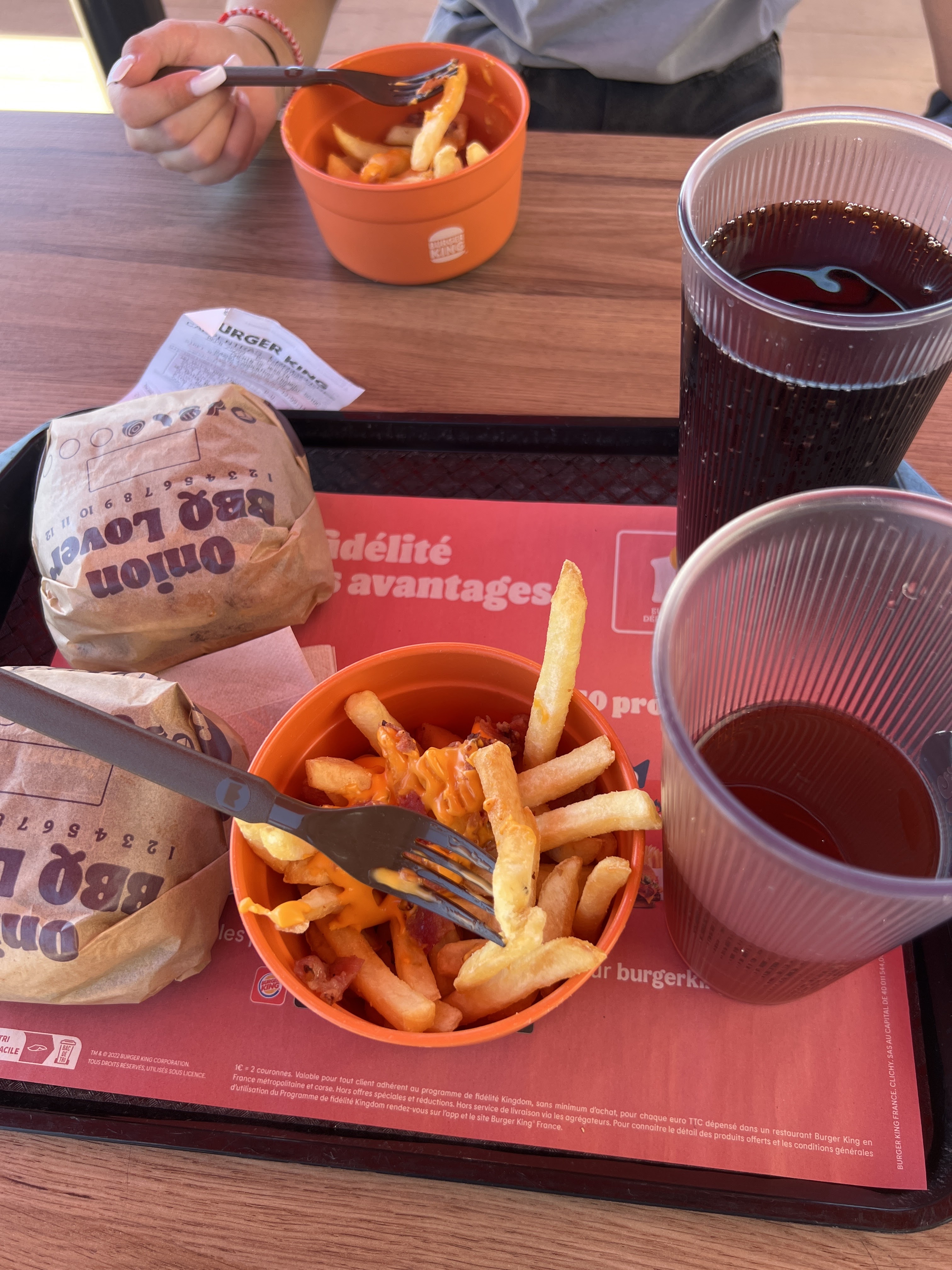 Bon moment partagé entre amis, encore une fois burger king nous régalent (mieux que macdo) en plus les serveurs sont sympa ! on conseil fortement !!