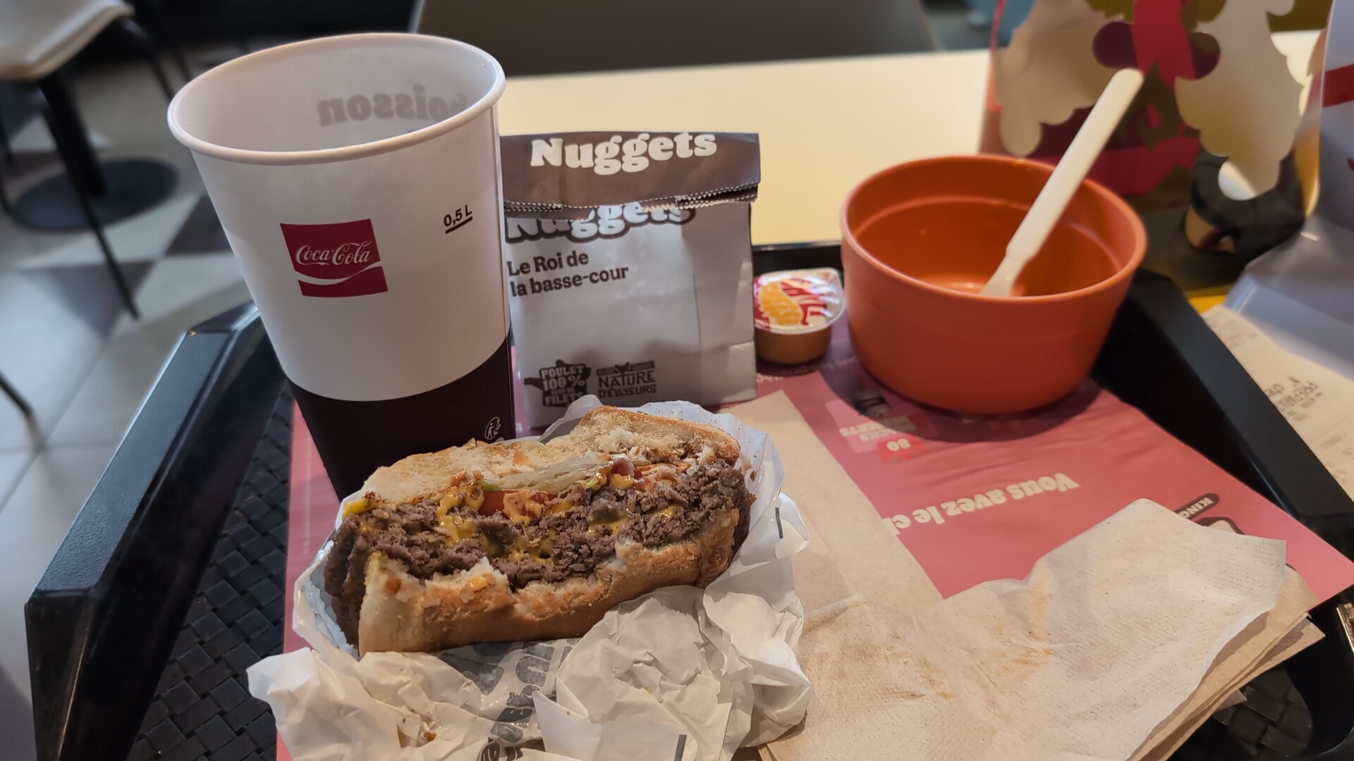 Après avoir attendu 30 à 40 minutes avec mon collègue, nous n'avons reçu que la moitié de notre commande. Dans mon menu enfant, il manquait le paquet de cartes One Piece, pourtant affiché à la borne. Lorsque j'ai demandé une solution à l'employé en face de moi, sa réponse indirecte et son ton désagréable m'ont donné l'impression d'être éconduits de manière très peu courtoise. Mon collègue, qui avait commandé deux petits sandwichs, n'en a reçu qu'un après une longue attente. Le personnel de l'accueil était désagréable et mal organisé. Nous avons même vu un employé se comporter de façon inappropriée avec une cliente qui, après avoir été patiente, a fini par élever la voix car sa demande n'avait pas été prise en compte à temps. Suite à cette expérience, je ne pense pas revenir ni recommander cet établissement.