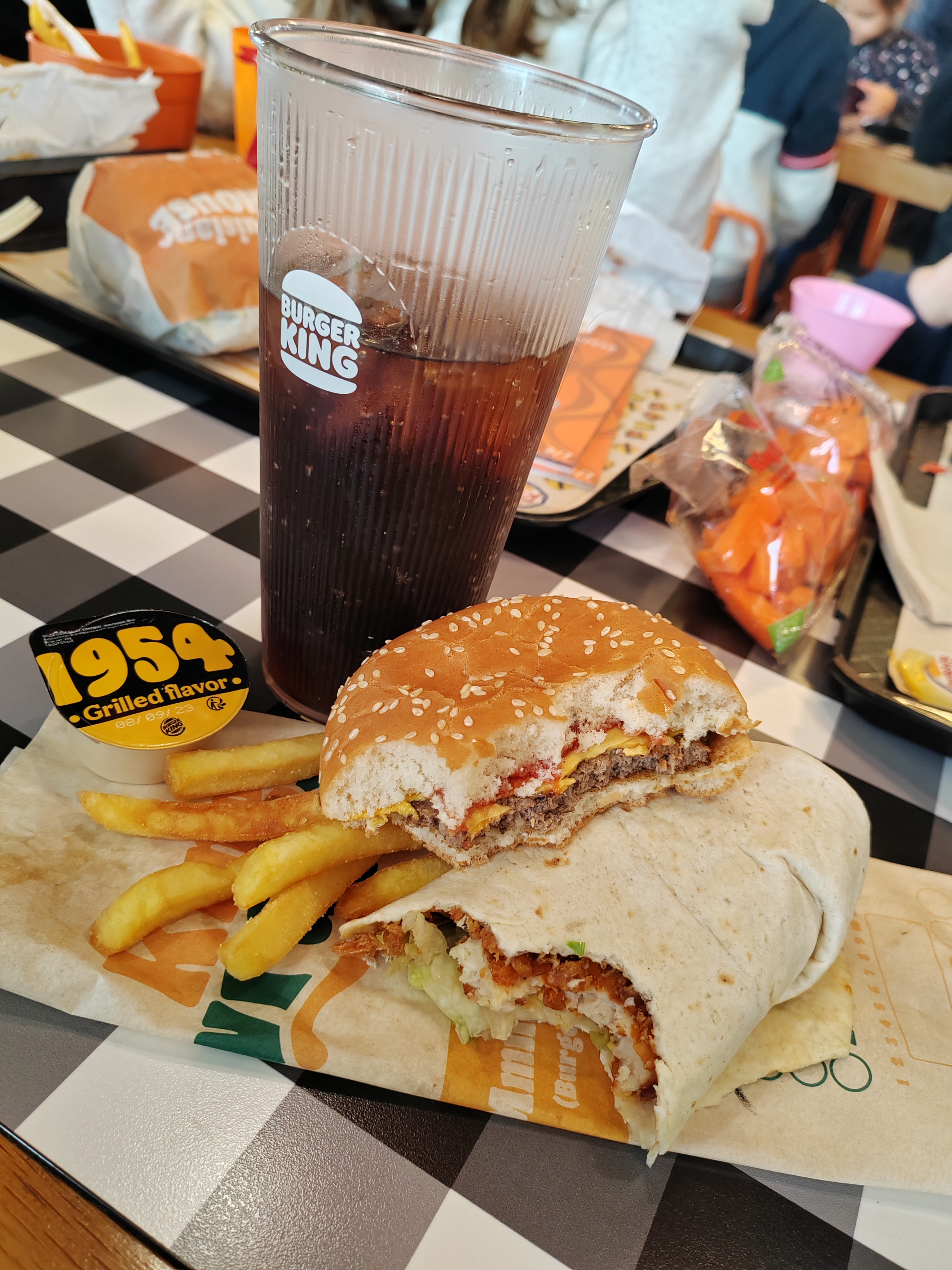 Le pire bk dans lequel j ai mangé, Commande passée en borne à 16h07, reçu à 16h30. Une fois la commande reçue, il manquait les oignions rings et le deuxième burger n’était pas celui de la commande. Ensuite, environ 10 minutes d’attente pour avoir une petite glace. De plus, l’intérieur n’était pas très propre au niveau des tables et la poubelle débordait, il y avait des déchets au sol.