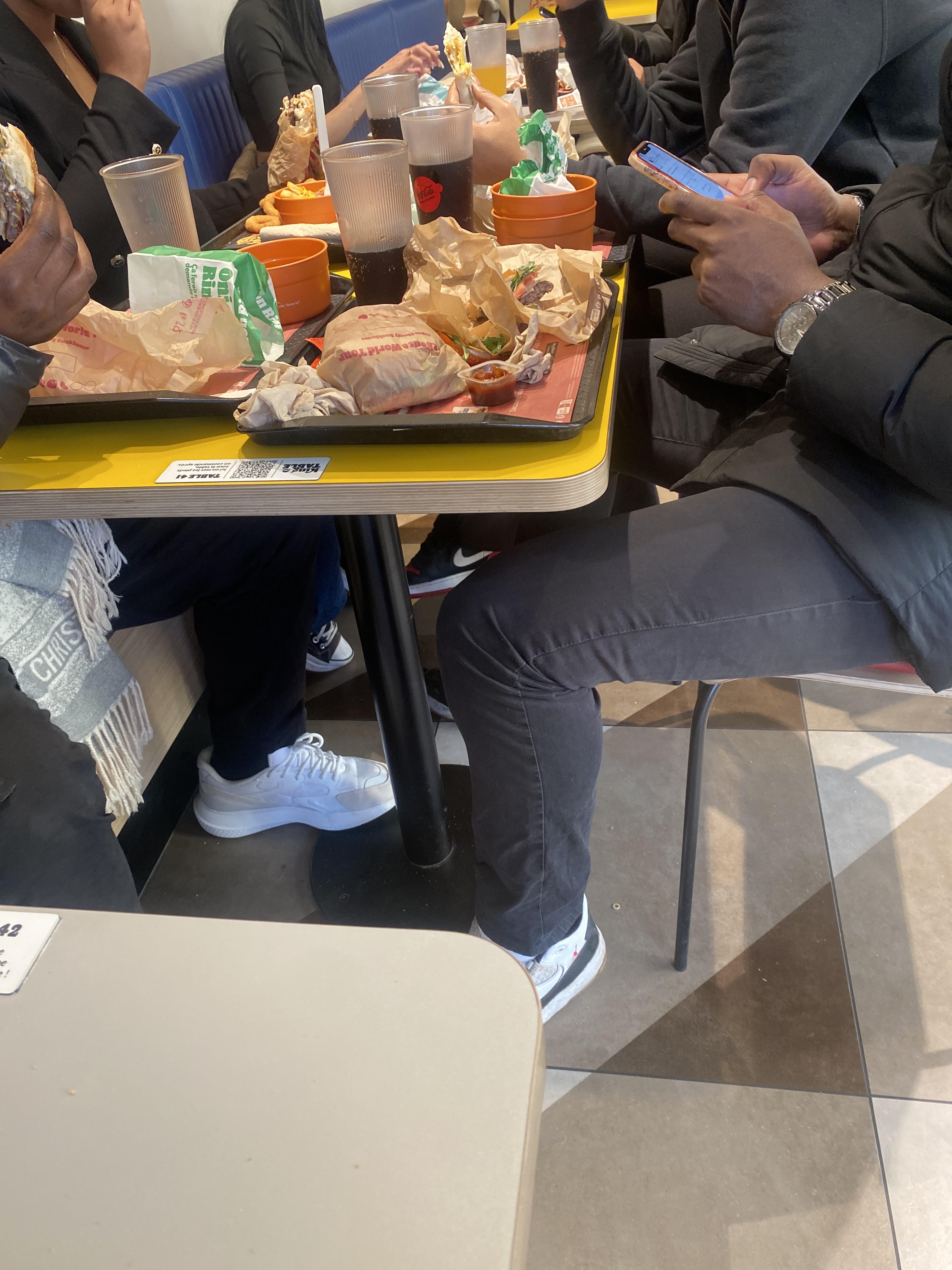 Bonjour, ce ne trouve ça pas normal le service que nous avons eu, étant donner je travail en hôtellerie restauration quand je vois comment les tables sont nettoyées on nous demande même pas, il mettent directement les produits sur la table ( donc on en reçoit ) et les miettes mises sur nous. En plus dans notre commande pas les bonne boissons. Dessus du service de ce Burger King.