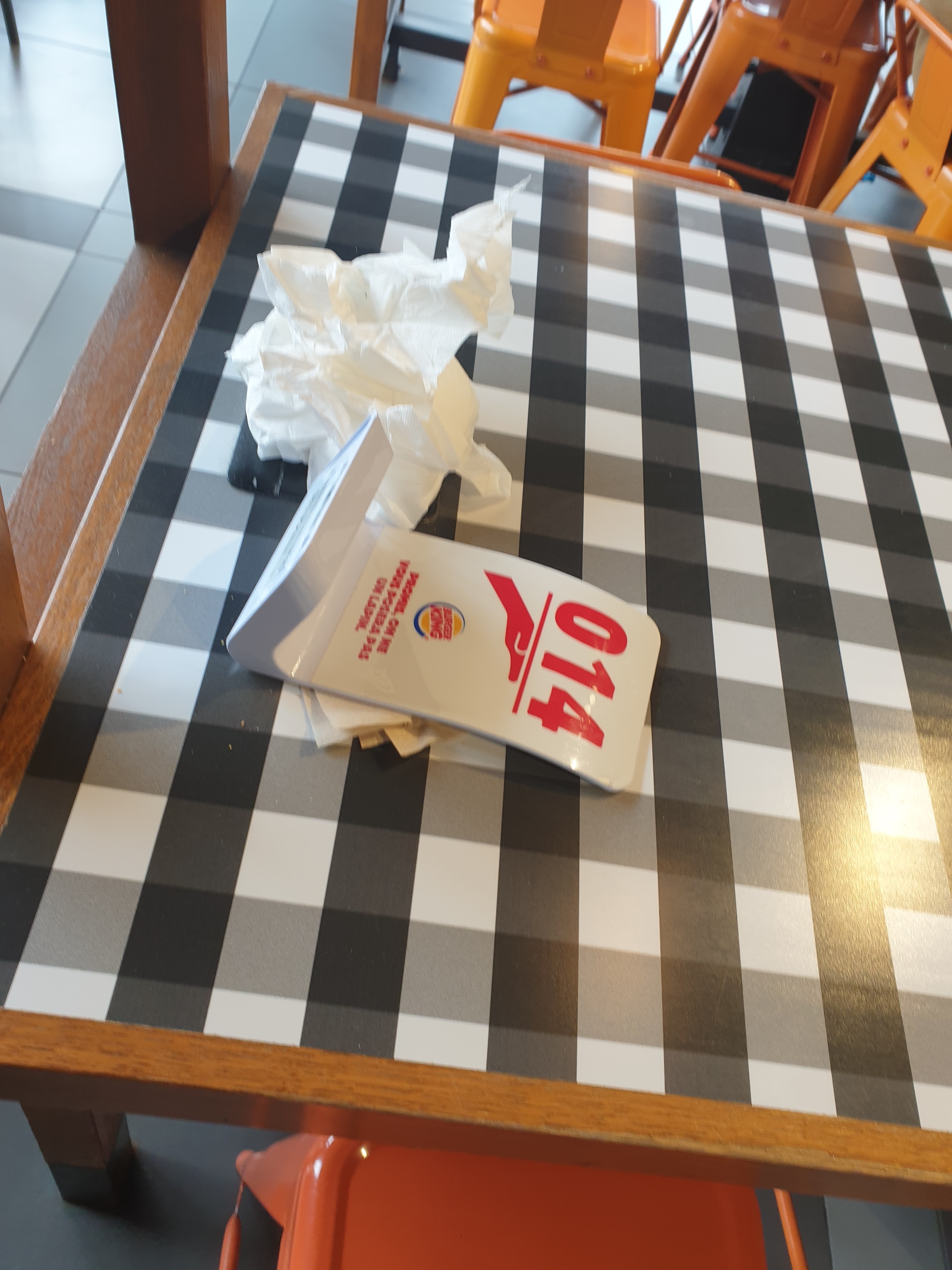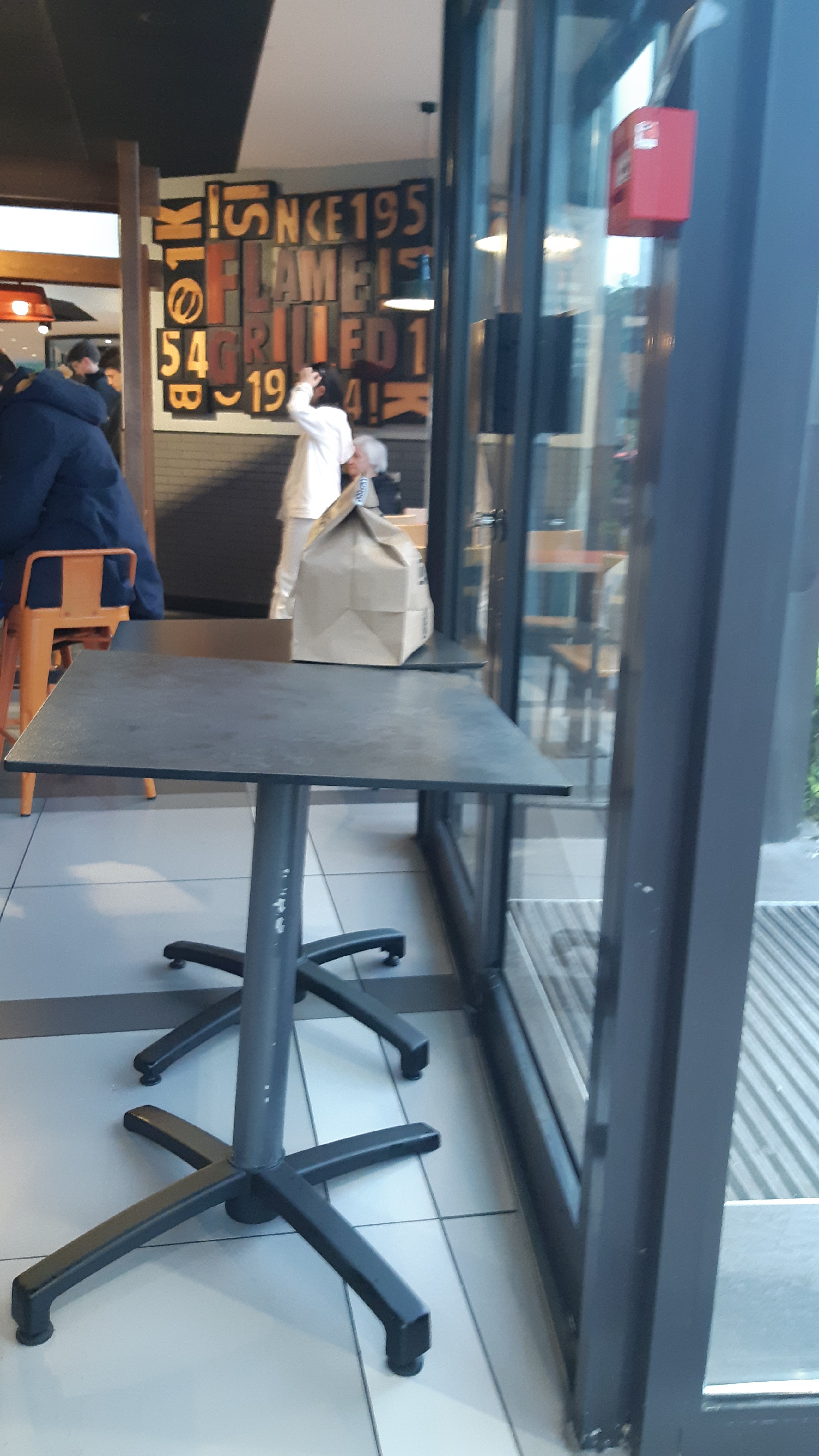 Pour l'ambiance, je ne peux pas vraiment donner mon avis car quasiment aucun client lors de mon passage donc service vraiment rapide pour le coup 👍 et personnel très aimable. 😃 Dommage que les tables soient marquées ce qui ne donne pas une impression de propreté.... Alors que j'apprécie beaucoup les produits de la marque, cette fois ci, j'ai trouvé les produits fades ... Je n'ai même pas senti le fout du grill qui est pourtant la marque de fabrique de l'enseigne.... et les sauces étaient en très faible quantité.... Dommage ....😐