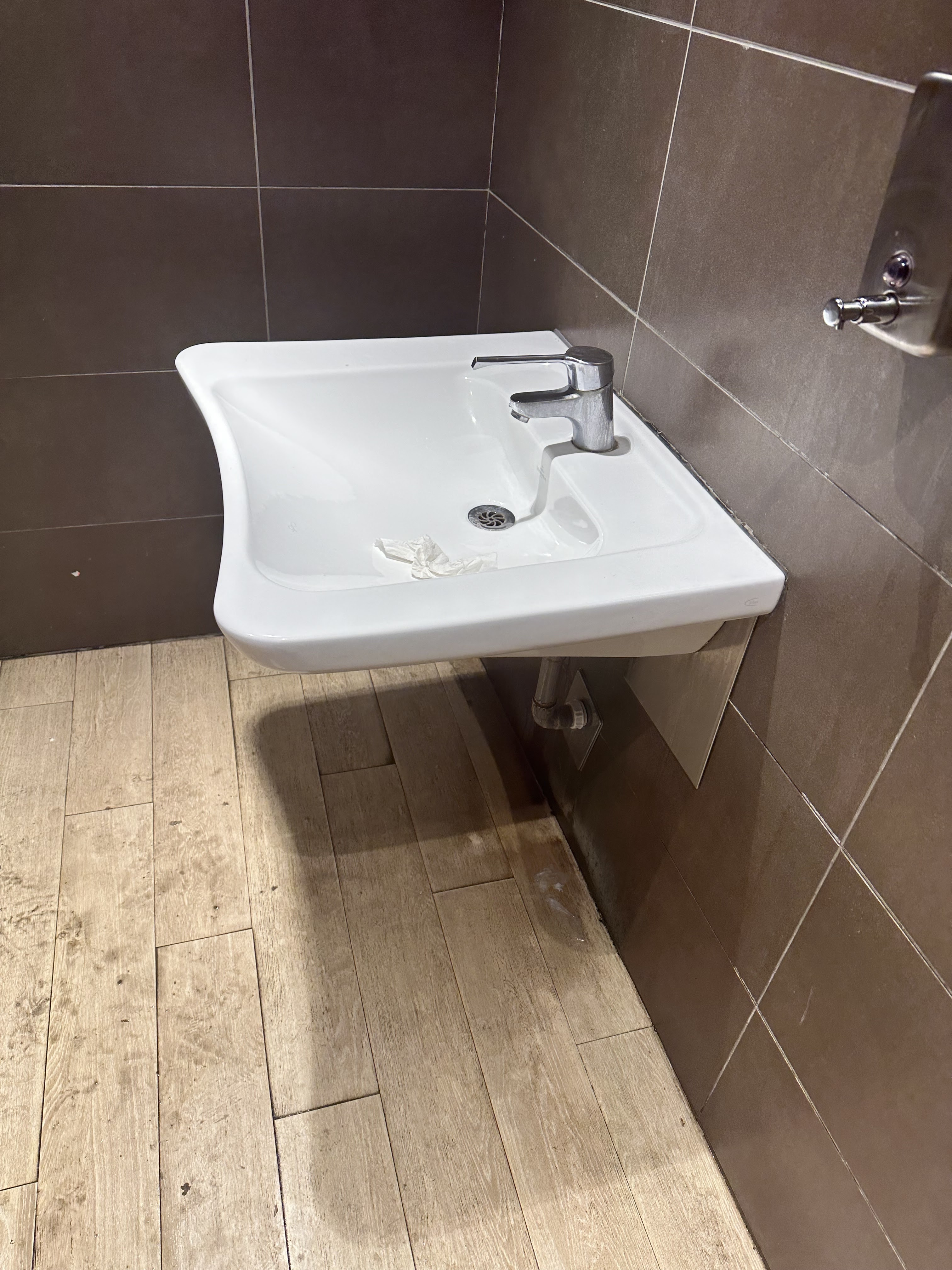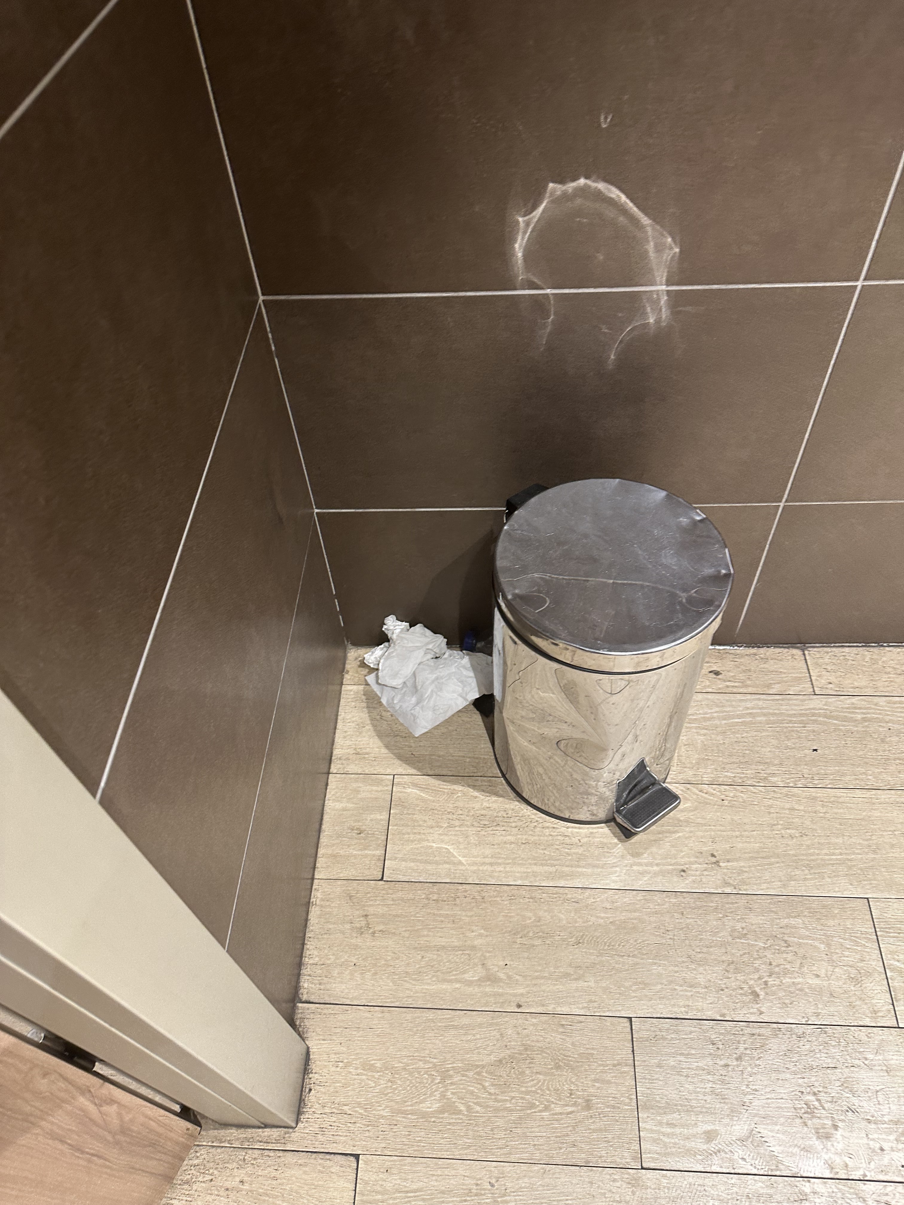 Sale. Le sol colle et les tables ne sont pas nettoyees A eviter