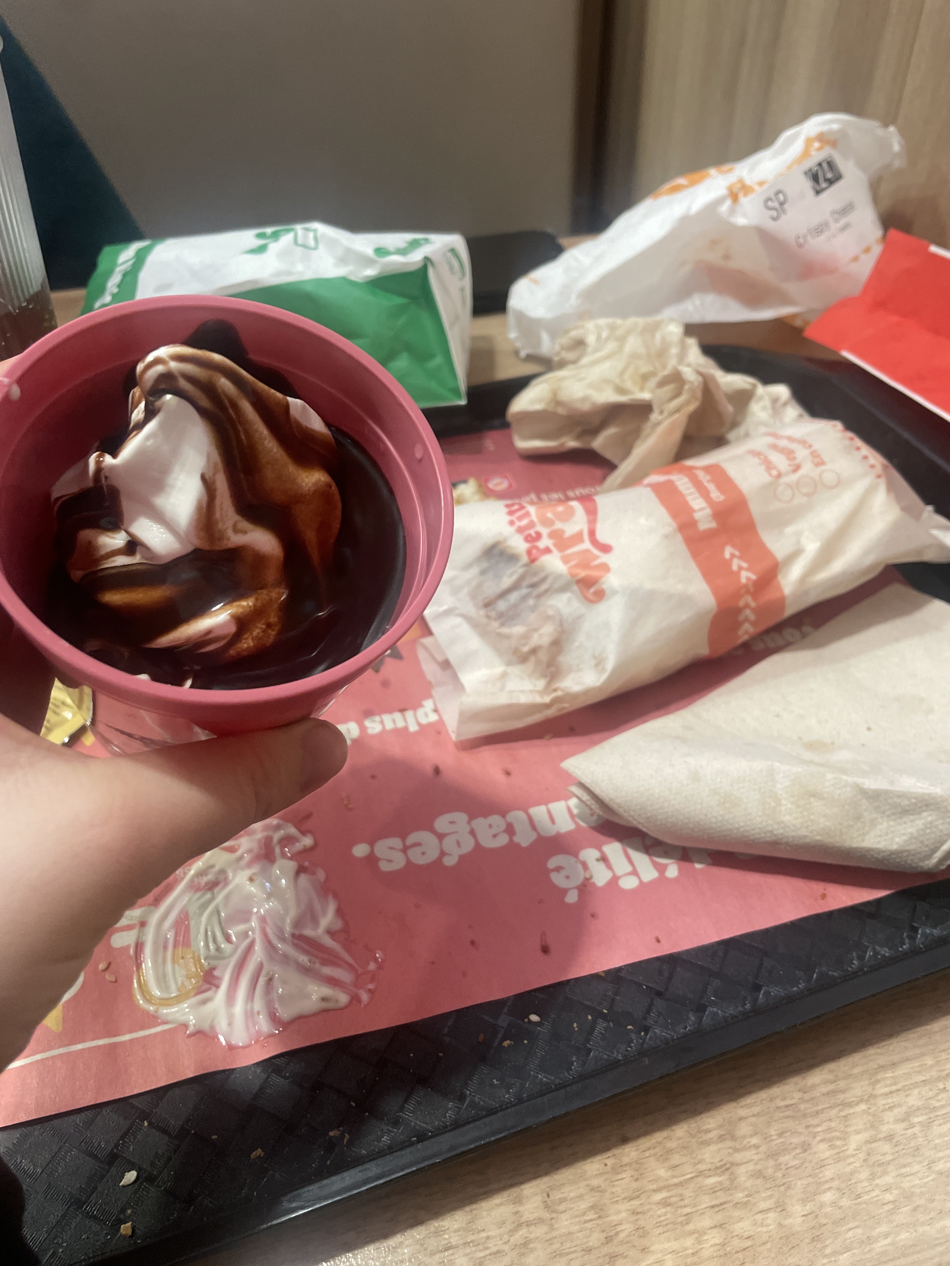 Je trouve sa deguelasse de votre part, payer pour une une grande glace king fusion a 3,90 et recevoir un fond de verre équivalent a 3 cuillères. J’ai demandé de m’en rajouter et on m’a refusé en me disant que c’était la portion j’ai meme ue droit a un regard de travers venant de la managers. Super merci 😠