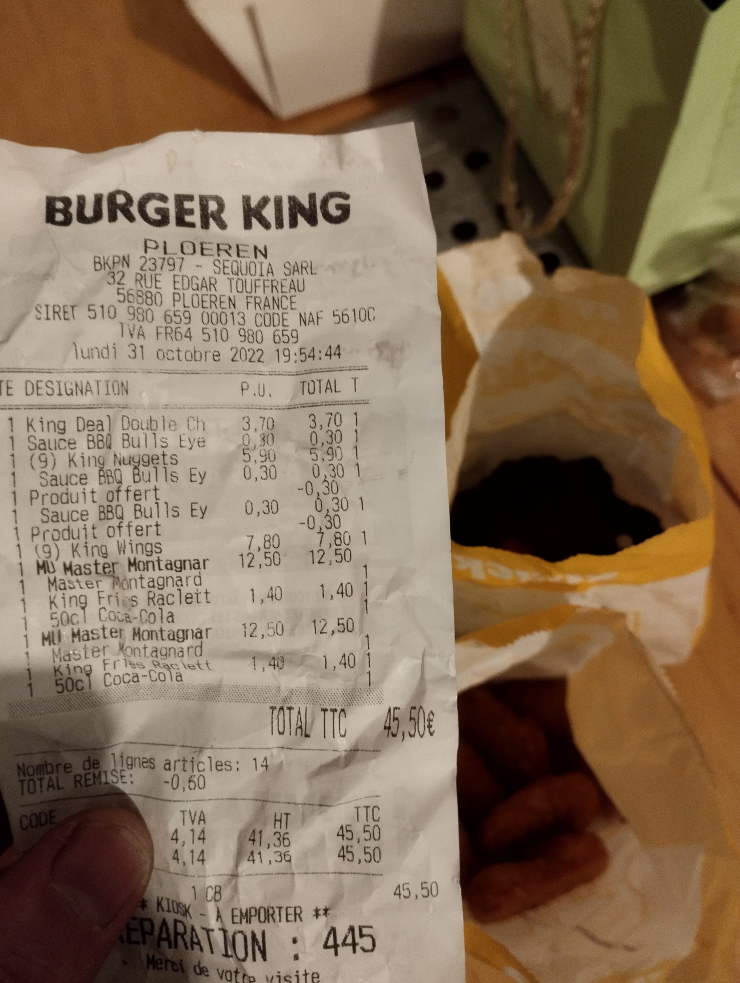 Une commande à 50.00 €, 35 minutes d'attente, une commande incomplète manque les sauces choisies. Du coup, au bout de tout ce temps, on part un peu agacé et en regardant le sac dans la voiture, on découvre qu'il manque le hamburger du menu Double Whopper dans la commande 948. Très très déçu... Je ne suis pas sûr de revenir....